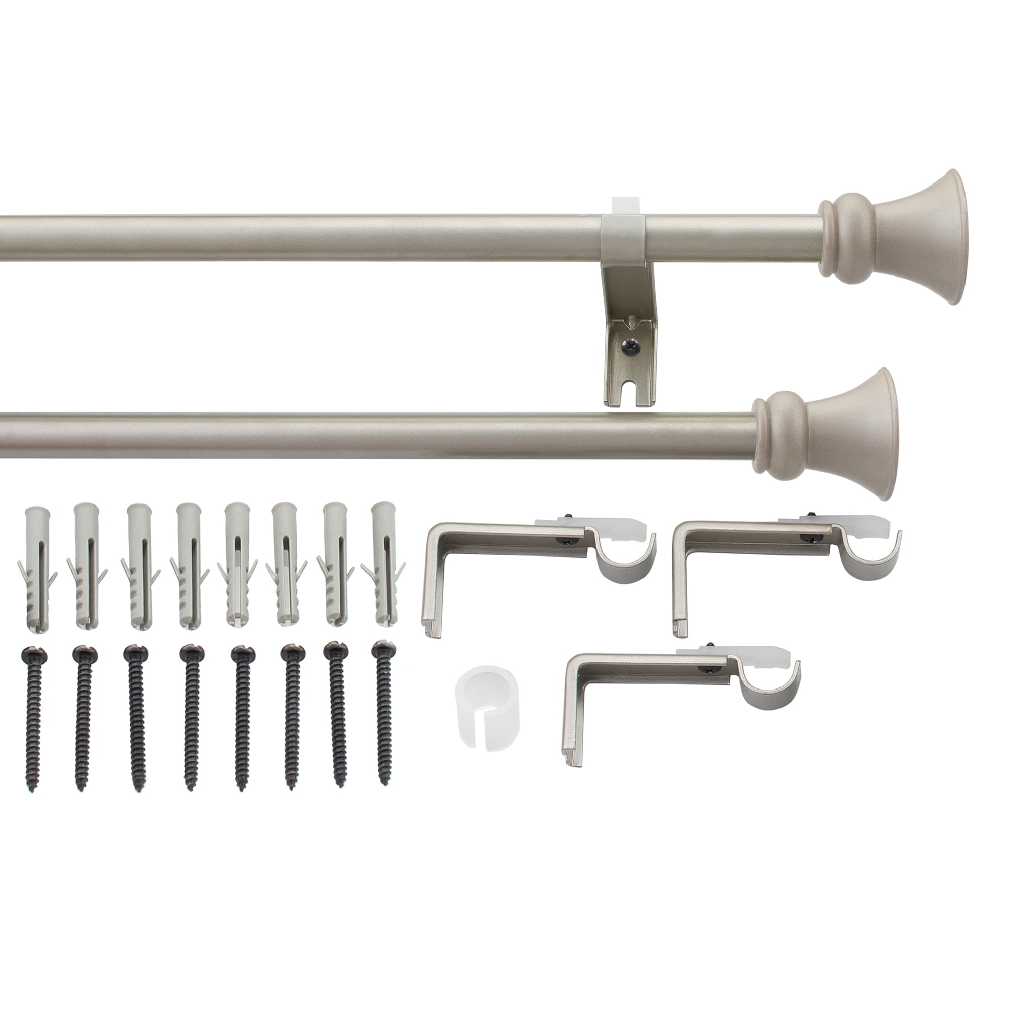 - WHAT’S IN THE BOX: We offer entire solution for complete curtain rod installation including 2 X Extendable Curtain Pole (28”-48”), 4 X Finials, 4 X Brackets, 8 X Screws & Fishers. You don’t have to call a professional for its installation as it can be easily fixed on ceiling as well as wall; all thanks to its multipurpose brackets that just needs simple drilling for installation.