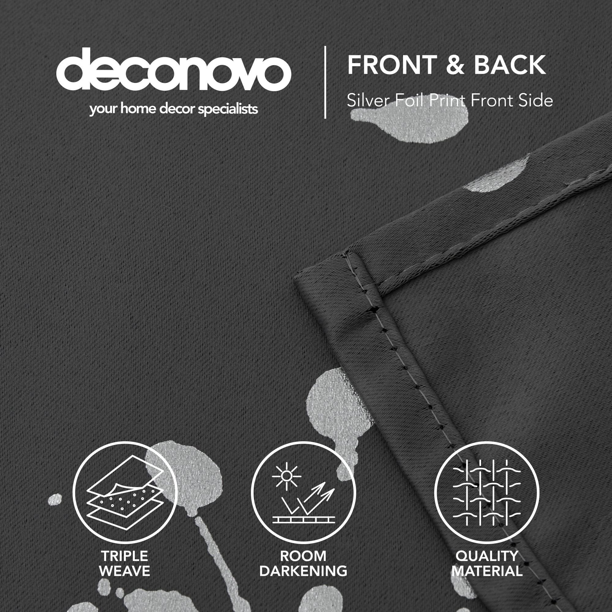 - PREMIUM QUALITY: Deconovo thermal curtains are made of 100 percent high quality polyester fabric. These dots printed window curtain panels are silky, soft, drapery and very pleasant to touch.