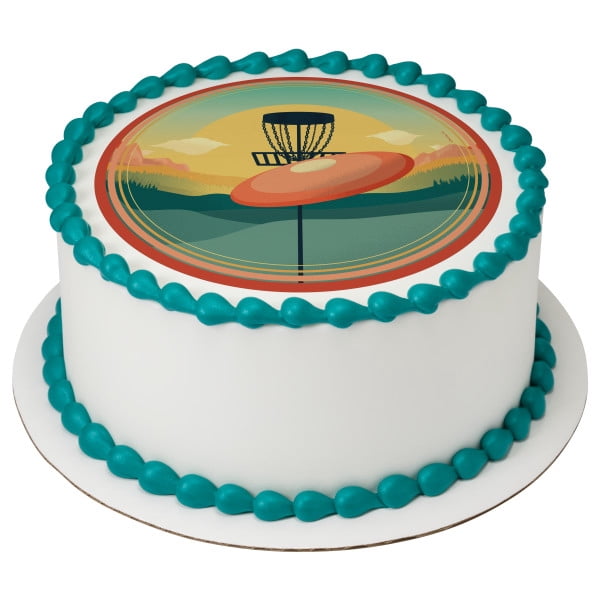 This disc golf image is right on par with any celebration. Bring the fun – and the frisbee! – to the dessert table FORE the party. Image can be personalized and is printed to fit an 8" round cake.Disc Golf Edible Image Cake Topper (8" Round)