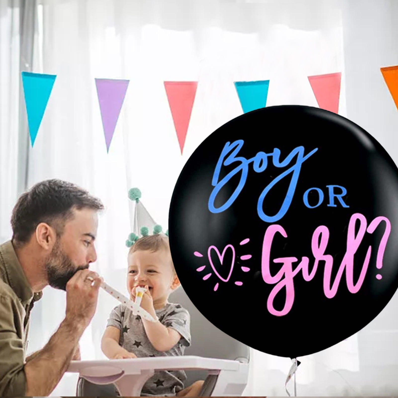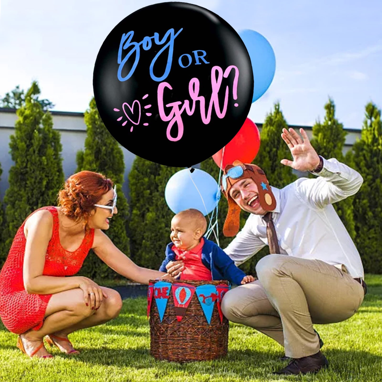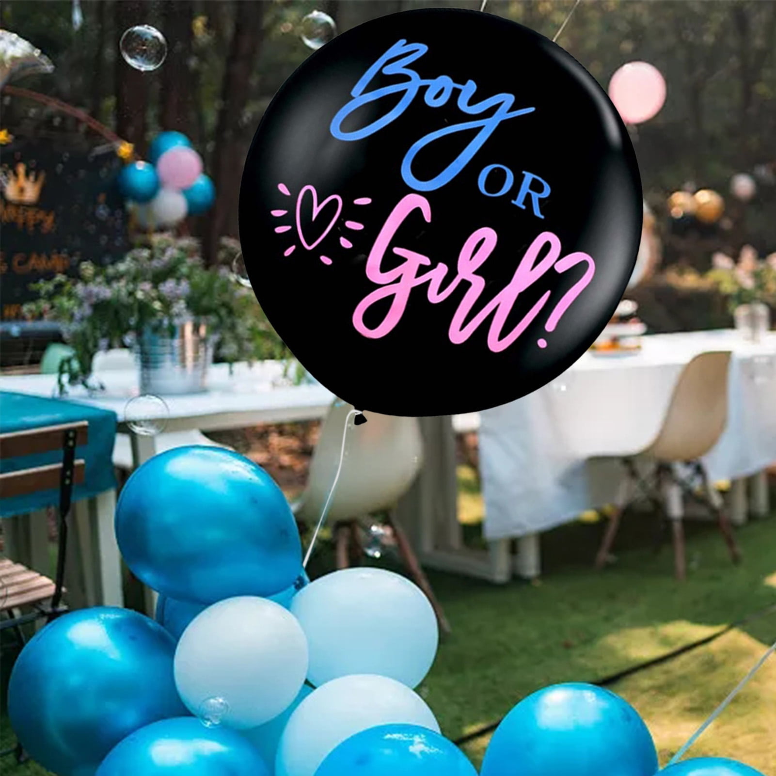 Famure Big Balloons Reveal Gender Big Balloons 36 Inch Round Boy or Girl Gender Reveal Balloon Big Black Balloons with Pink and Blue Heart Shape