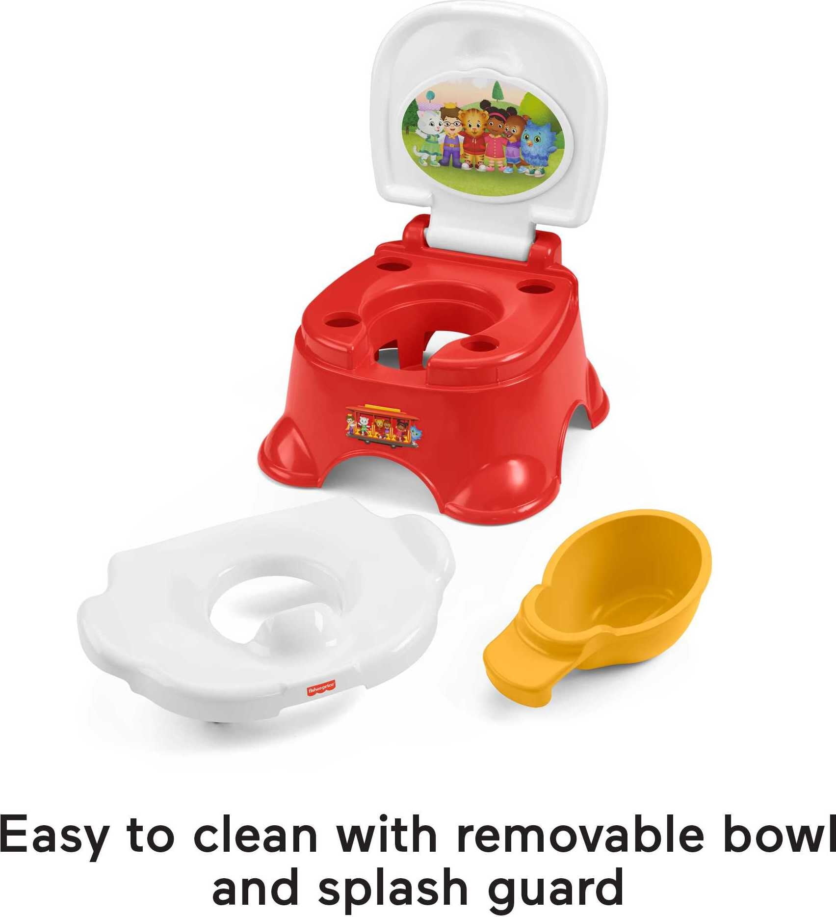 - Daniel Tiger’s Neighborhood-themed training potty with 3 stages in 1: potty chair, potty ring, and stepstool