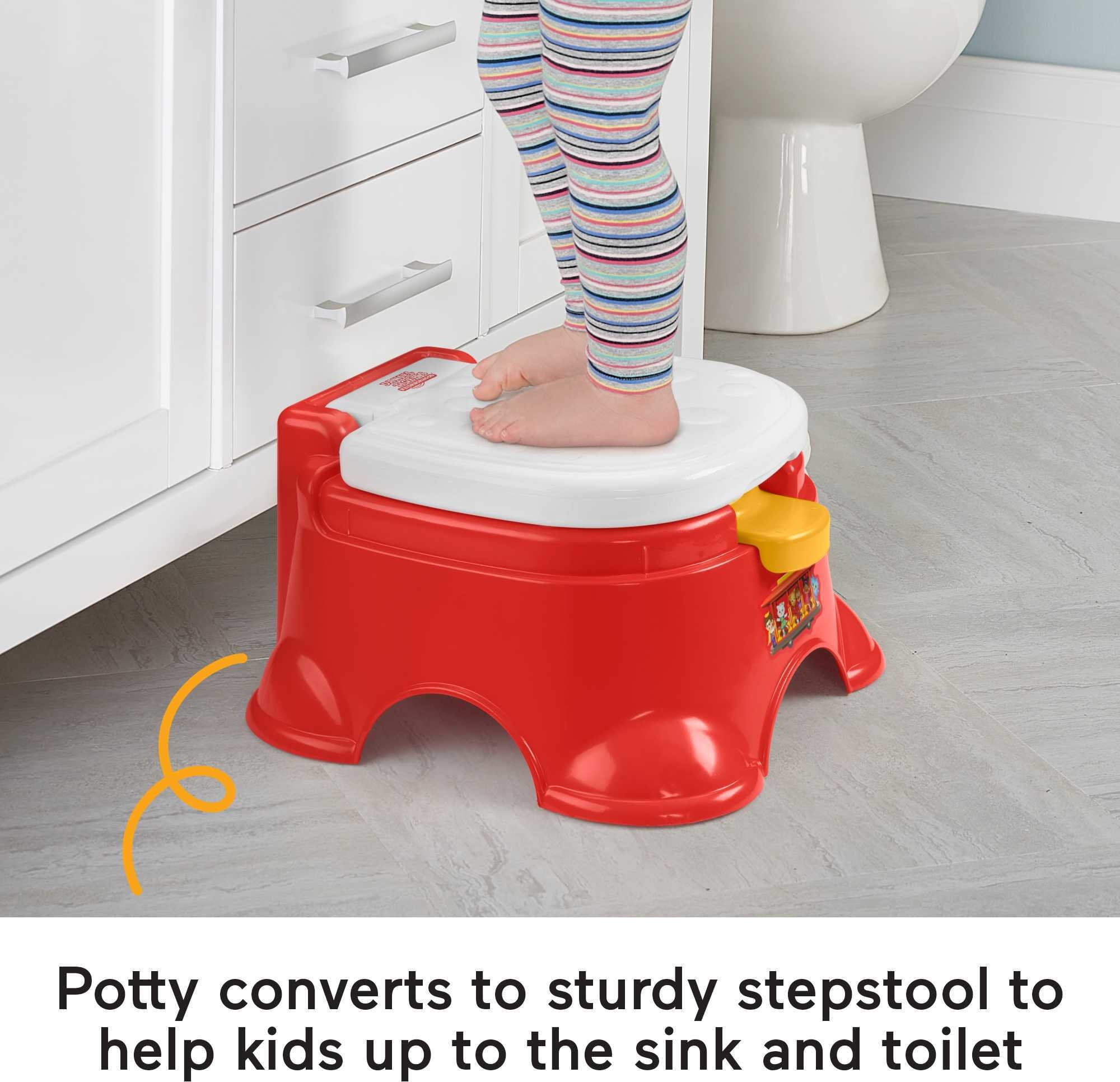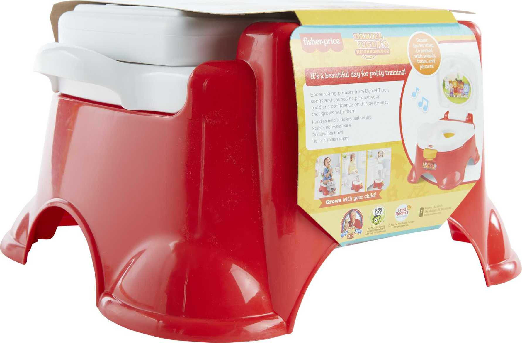The Fisher-Price Daniel Tiger’s Neighborhood Potty makes your toddler’s potty training a little more ‘grr-ific’ with the help of Daniel Tiger and friends. This potty chair ‘grows’ with your child, beginning as a training potty chair with songs, sounds, and encouraging phrases from Daniel Tiger that reward success. Then, the removable potty ring helps your preschooler transition to the big toilet, and the potty converts to a sturdy stepstool that helps them get on and off the toilet and a boost up to the sink.