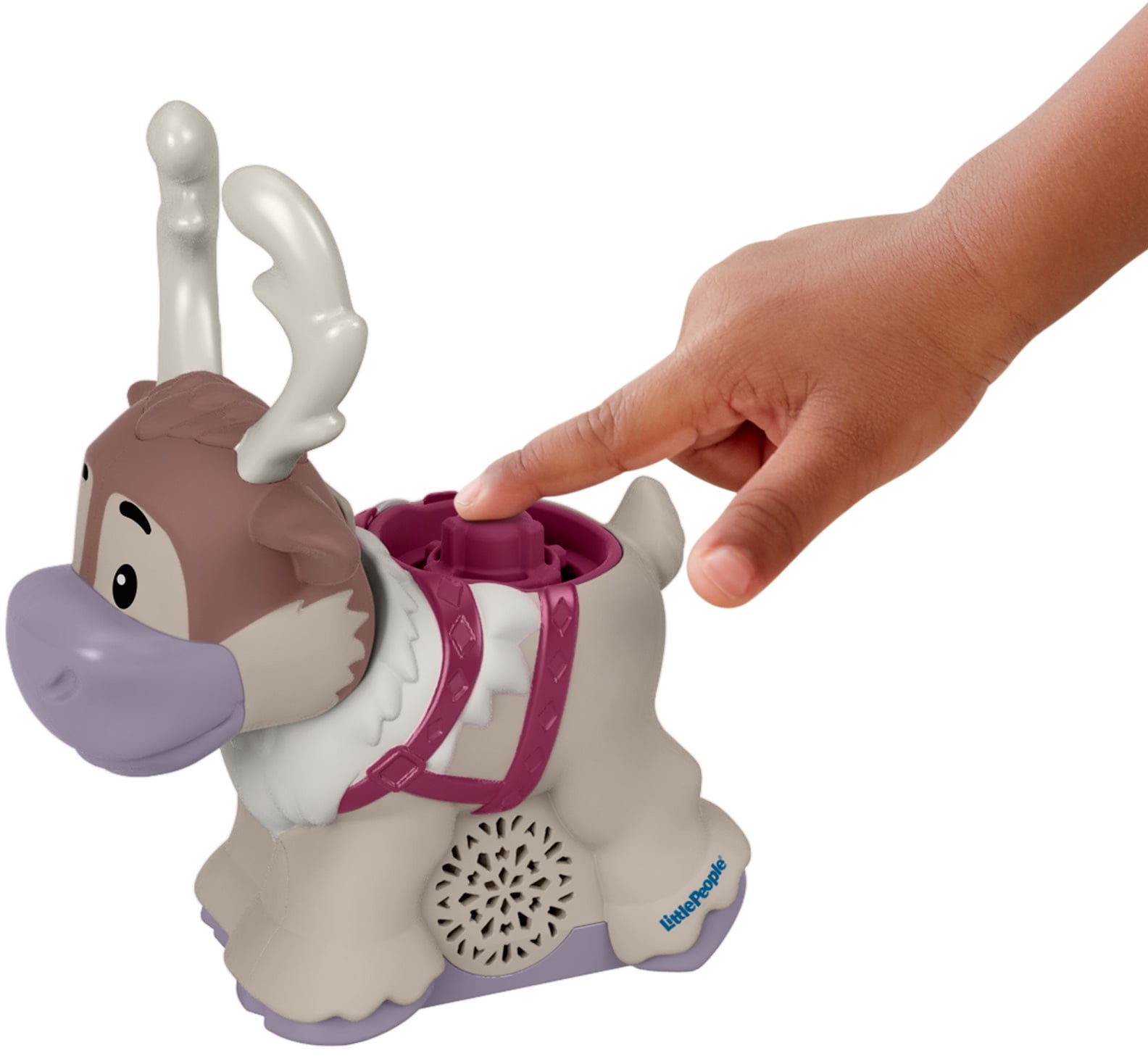 - Press the button on the reindeer’s back for fun sounds and move his head up and down for realistic play