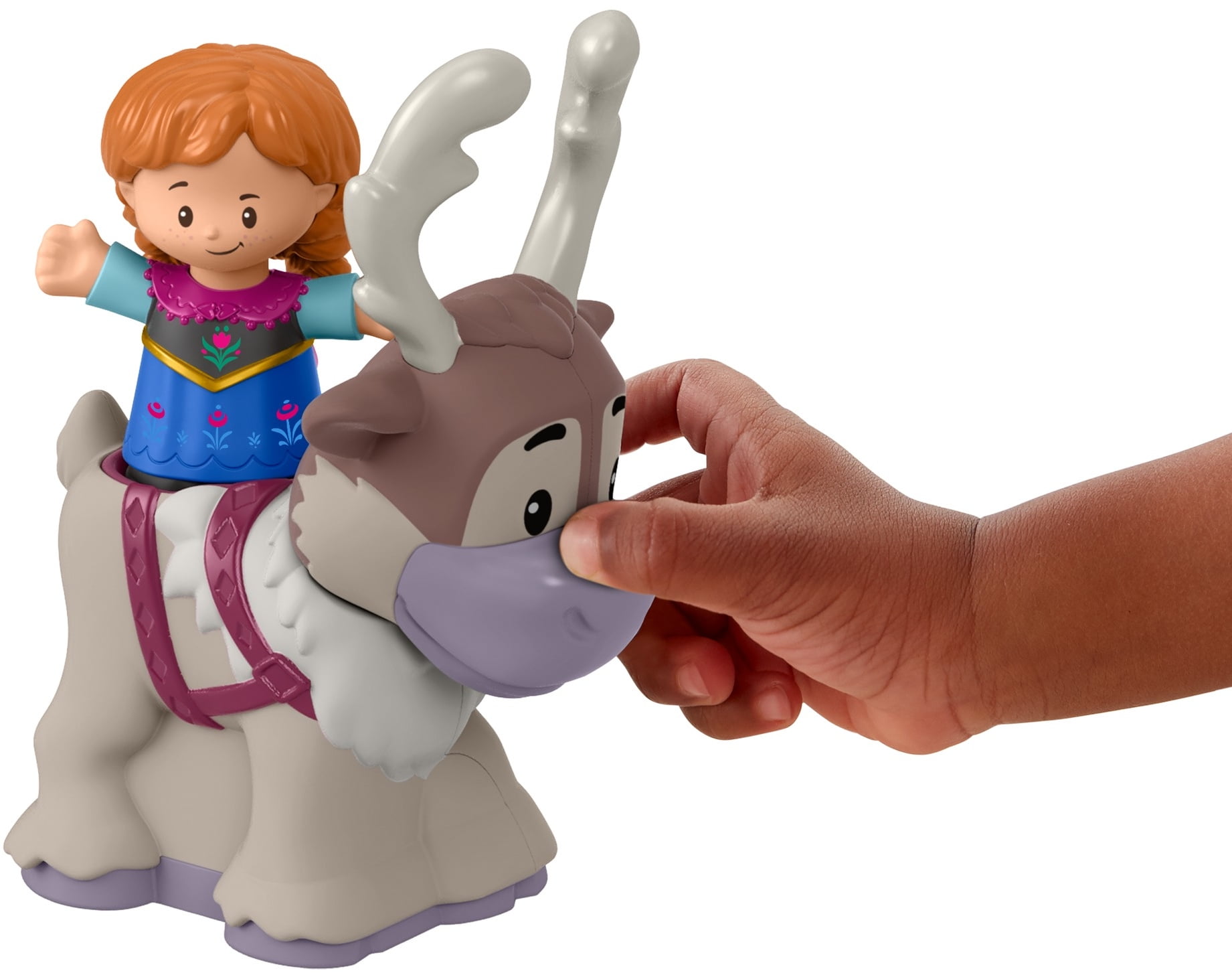 - Disney Frozen Anna figure fits in Sven’s saddle for "riding" play