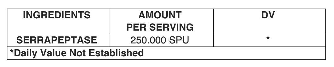 Serrapeptase proteolytic enzyme (Providing a minimum 250,000 SPU/SU per capsule)