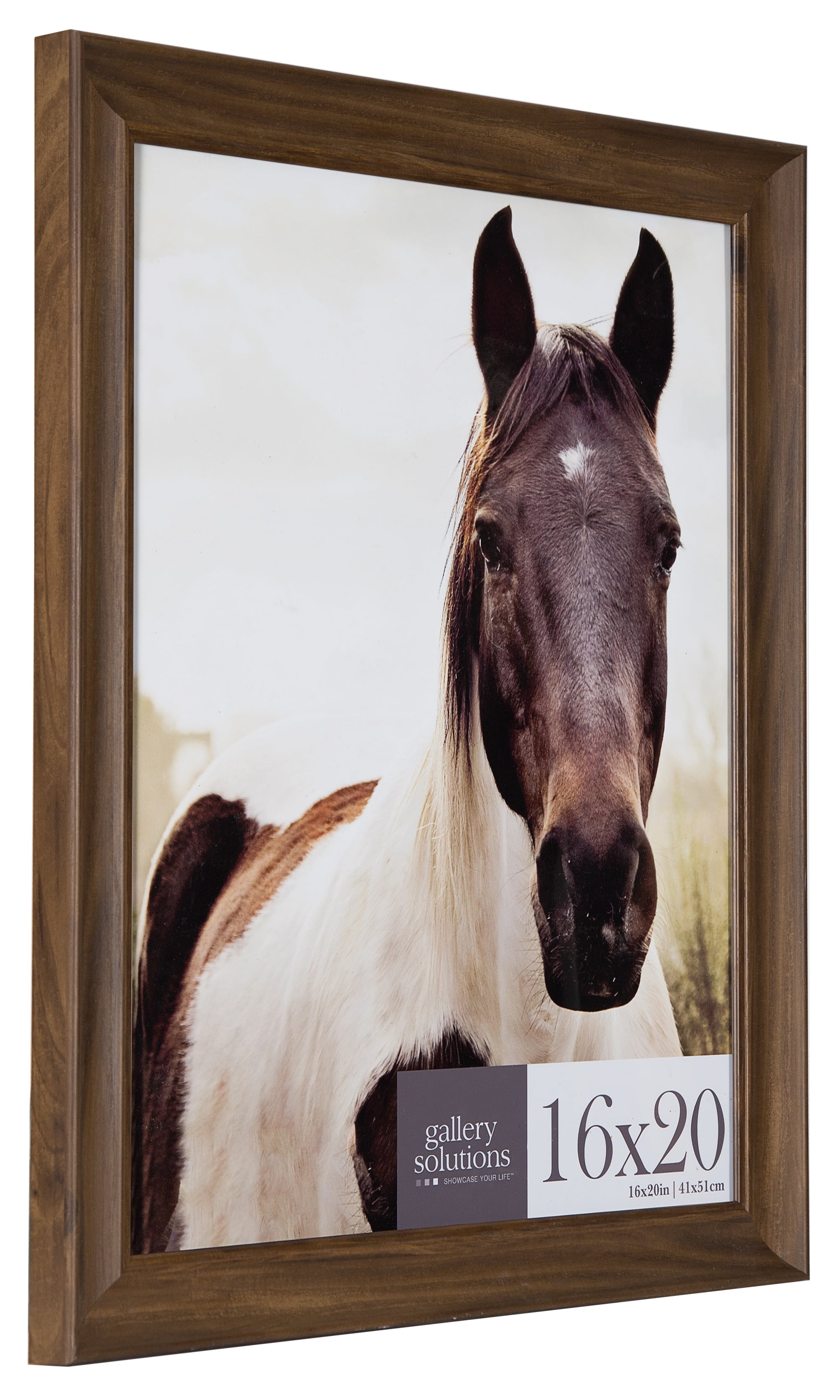 - Timeless walnut scoop frame holds a 16×20 image without a mat