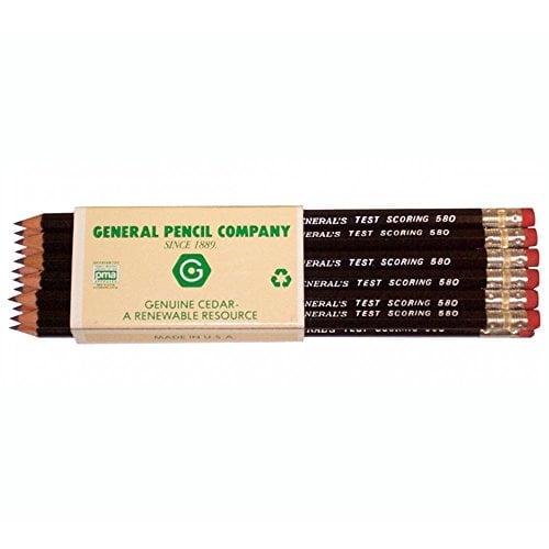 This General Test Scoring Pencil #580 has a soft black graphite lead that may be used for "Scantron" testing. It is a particularly useful pencil for the visually impaired because it makes a dark black mark. Box of 12.