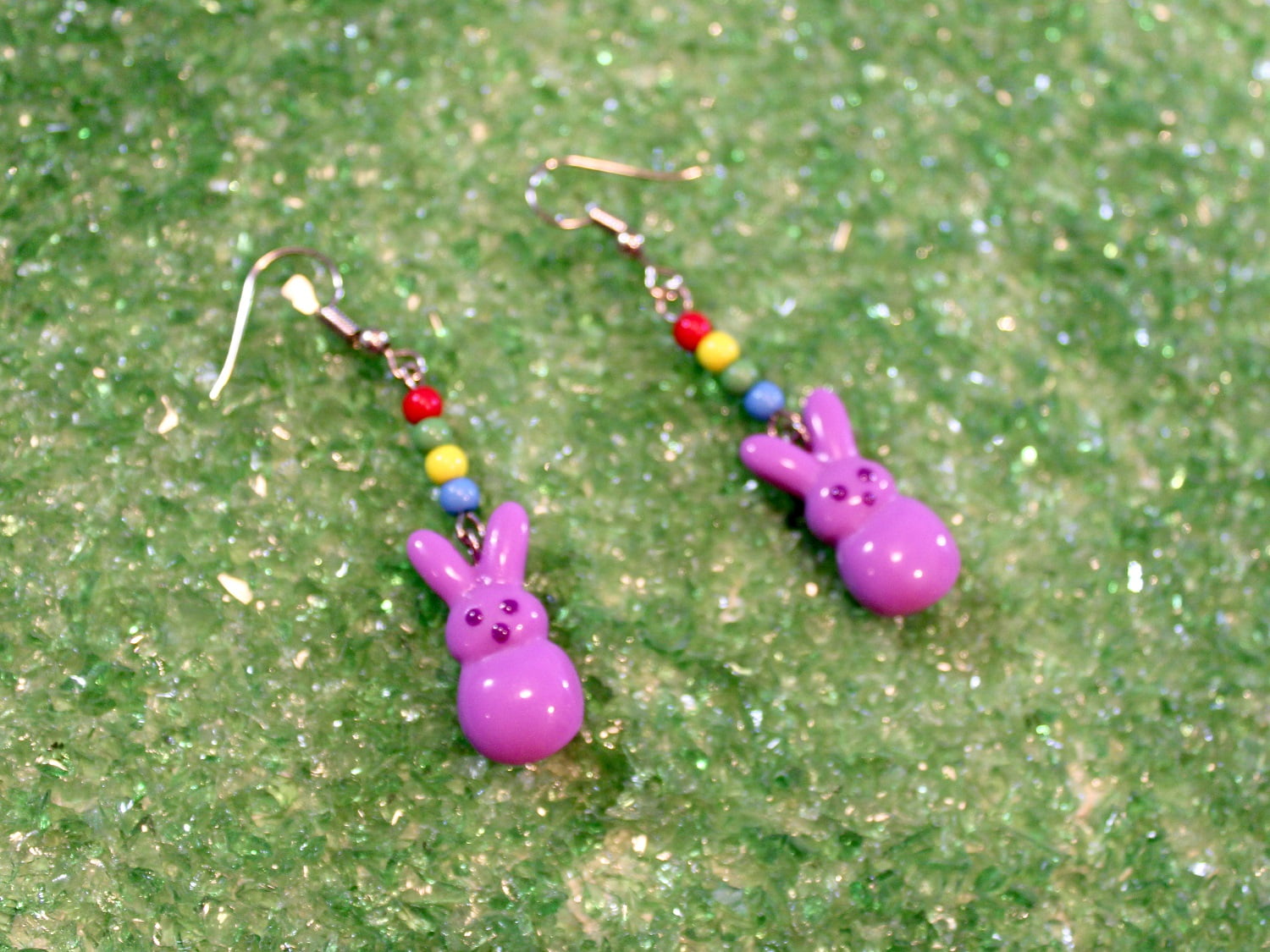 Our Peeps girls drop earrings is the perfect gift for every Peeps fan! Our Peeps Drop Earrings are the iconic Peeps purple bunnies with four colorful beads on a silver tone ear wire. The perfect earrings for any little girl to wear during any easter celebration!
