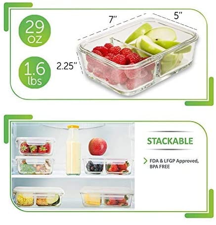 - HELP YOU KEEP YOUR DIET – The portion control feature of the divided glass lunch containers allows you to regain control over your meals. Featuring two compartments, the portion control glass containers make it easy to organize your meals and keep your diet plan.