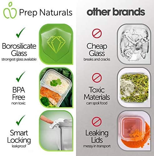 - PREMIUM LOOK AND DESIGN – If function and style are what you’re after, Prep Naturals Glass Food Storage Set is hard to beat. The beautiful finishing and design of the glass meal containers make them perfect for gym, picnics, office lunches.