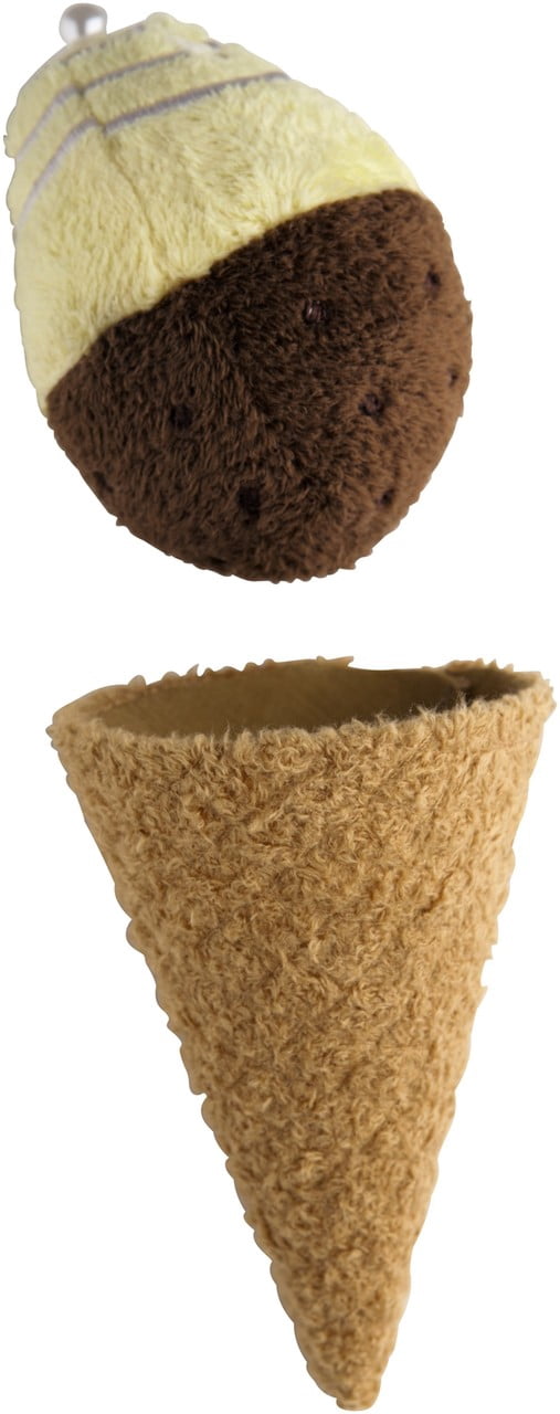 - 4 flavors include vanilla chocolate chip, strawberry, chocolate chocolate chip and butter pecan. Each flavor features embroidered detail and one has a bead (cherry) sewn on top.