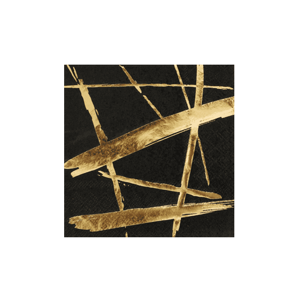 Add edge and artful detail to your tabletop with a splash of gold.Harlow & Grey, Noir Black and Gold Foil Brush Strokes Cocktail Paper Napkins, 5" Folded, 20 Count