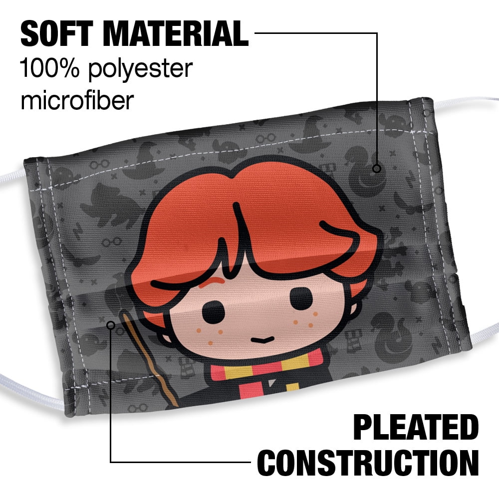 Harry Potter Ron Chibi and Pattern 1-Ply Reusable Face Mask Covering, Kids