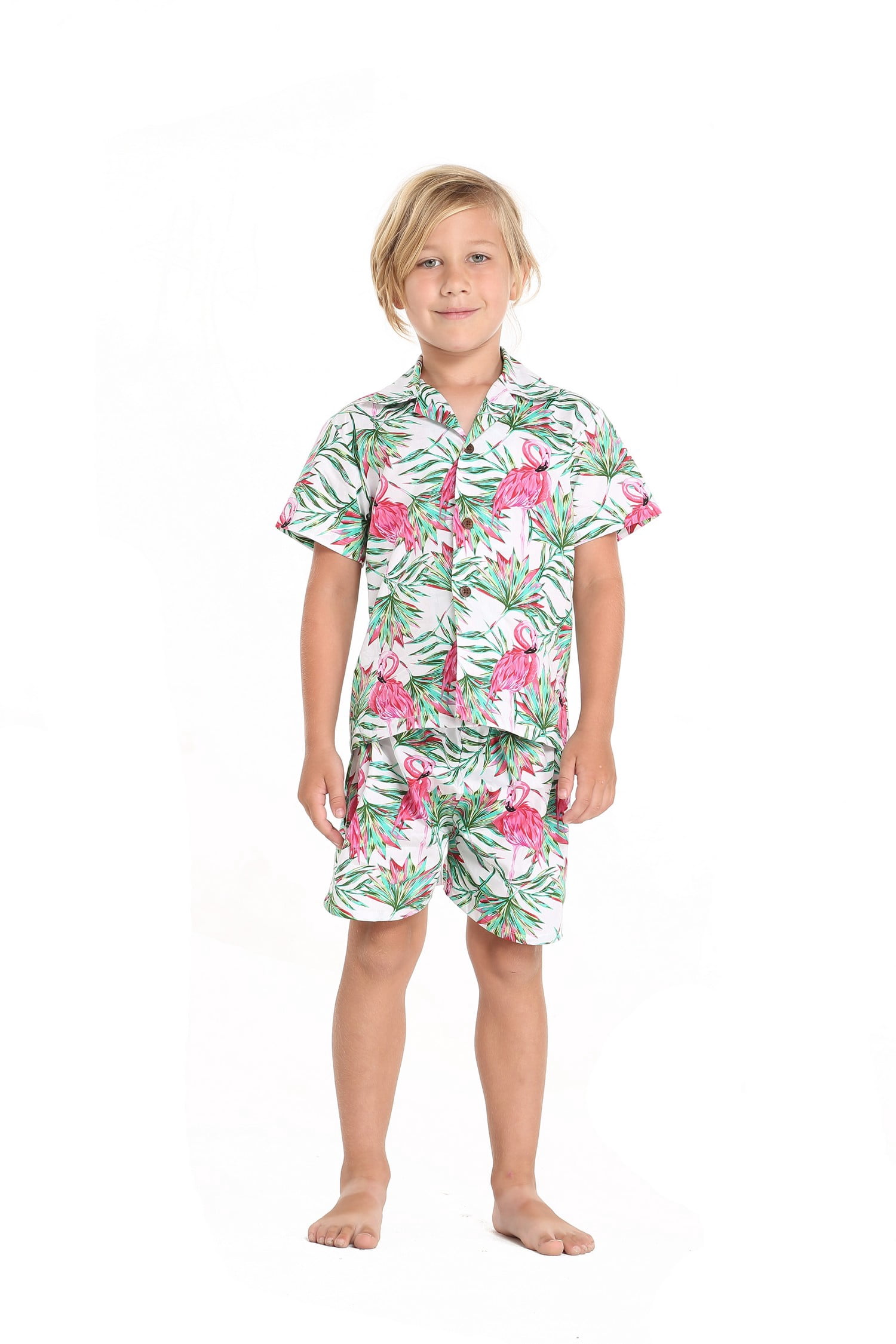 Hawaii Hangover Boy Aloha Luau Shirt Cabana Set in Flamingo in Love