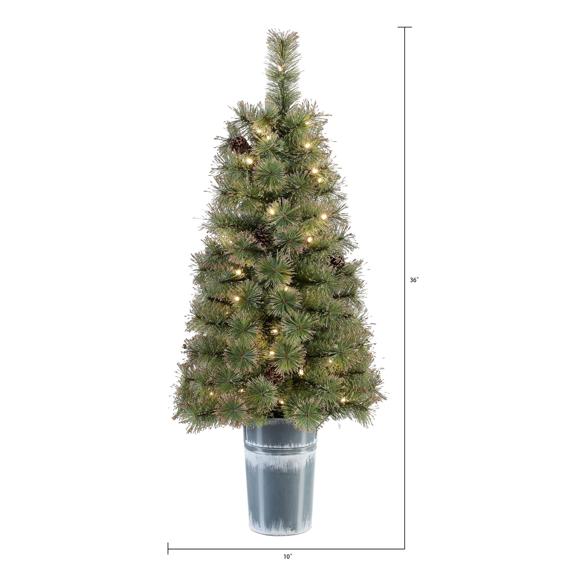 Holiday Time Pre-Lit LED Gold Glitter Tipped Potted Tree Christmas Decoration, 4′, Warm White
