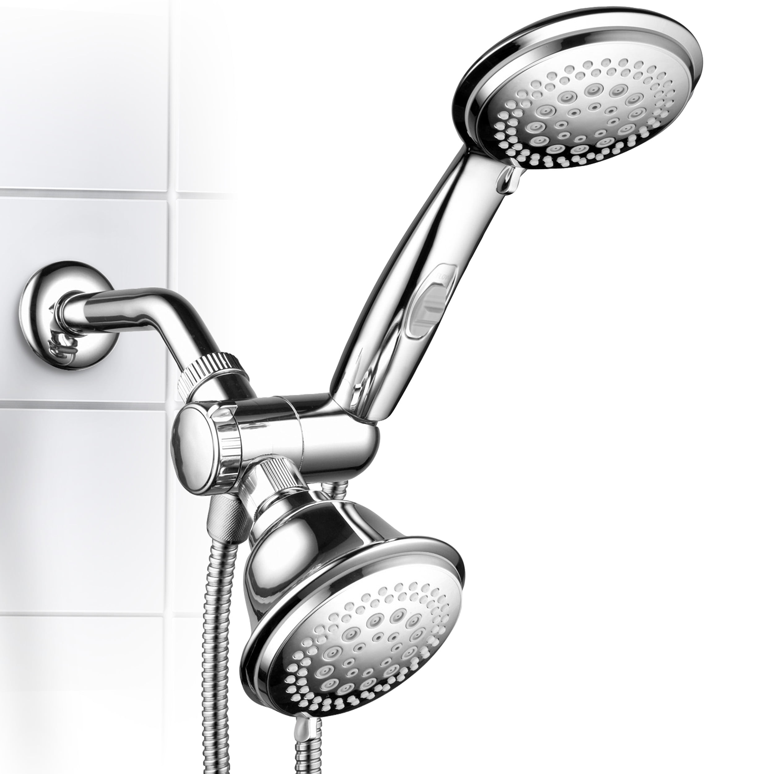 HotelSpa Ultra-Luxury 42-Setting 3-Way Shower Combo with Patented On/Off Pause Switch Showerheads & Handheld Showers and 5-7-Foot Stretchable Stainless Steel Hose / Premium Chrome