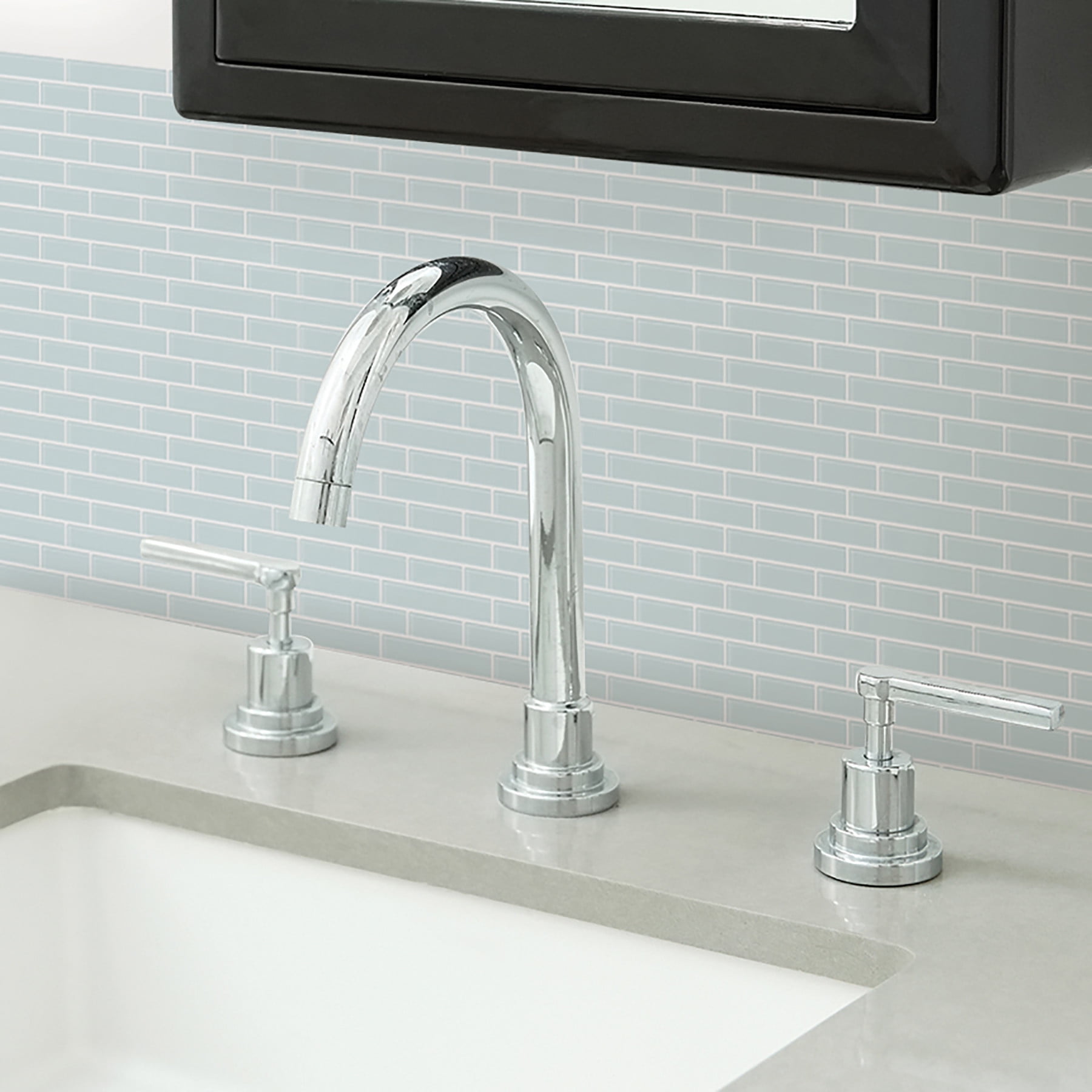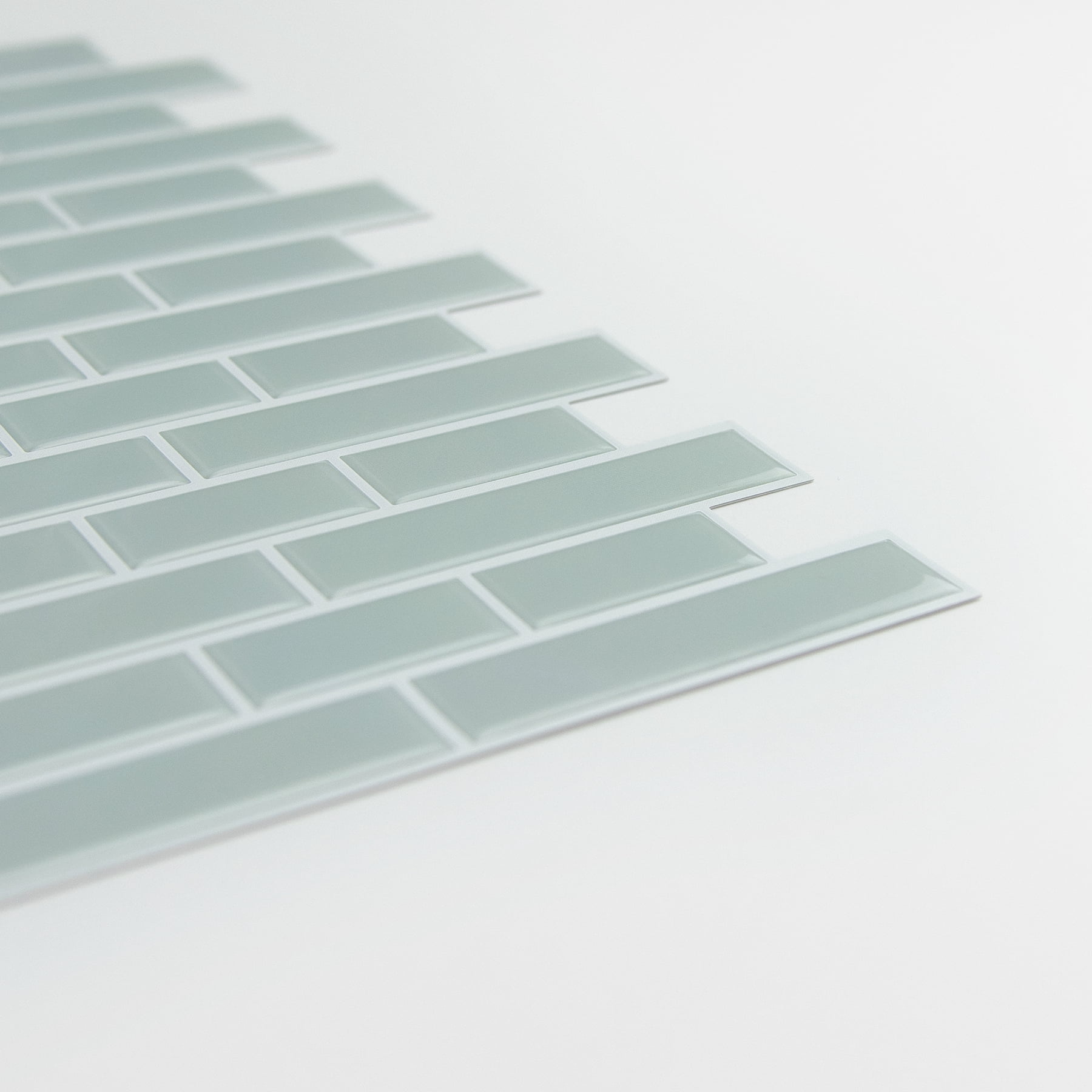 These resin tile panels are a great way to makeover your kitchen or bathroom. The four square 10-in by 10-in panels are perfect for redoing a backsplash, bookshelf, or staircase and have a high shine finish. The blue color gives the look of sea glass. A stove without a backing needs 15-in of space or more above range to avoid exposure of product to heat. Comes with four panels and covers about 2.7 square feet.