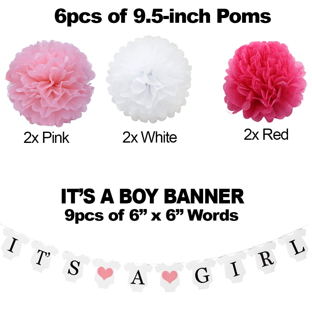 CoreLife It’s A GIRL for Baby Shower Decorations set 54pcs with Photo Booth Props latex Balloons Large Helium Balloons Poms and Banner Kit for Girls