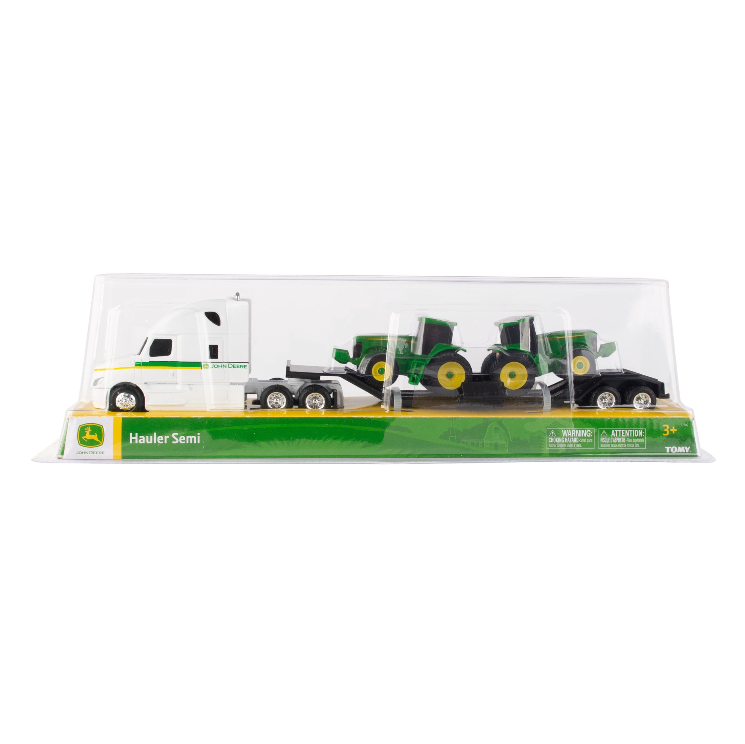- Set includes semi, trailer and two John Deere Tractors