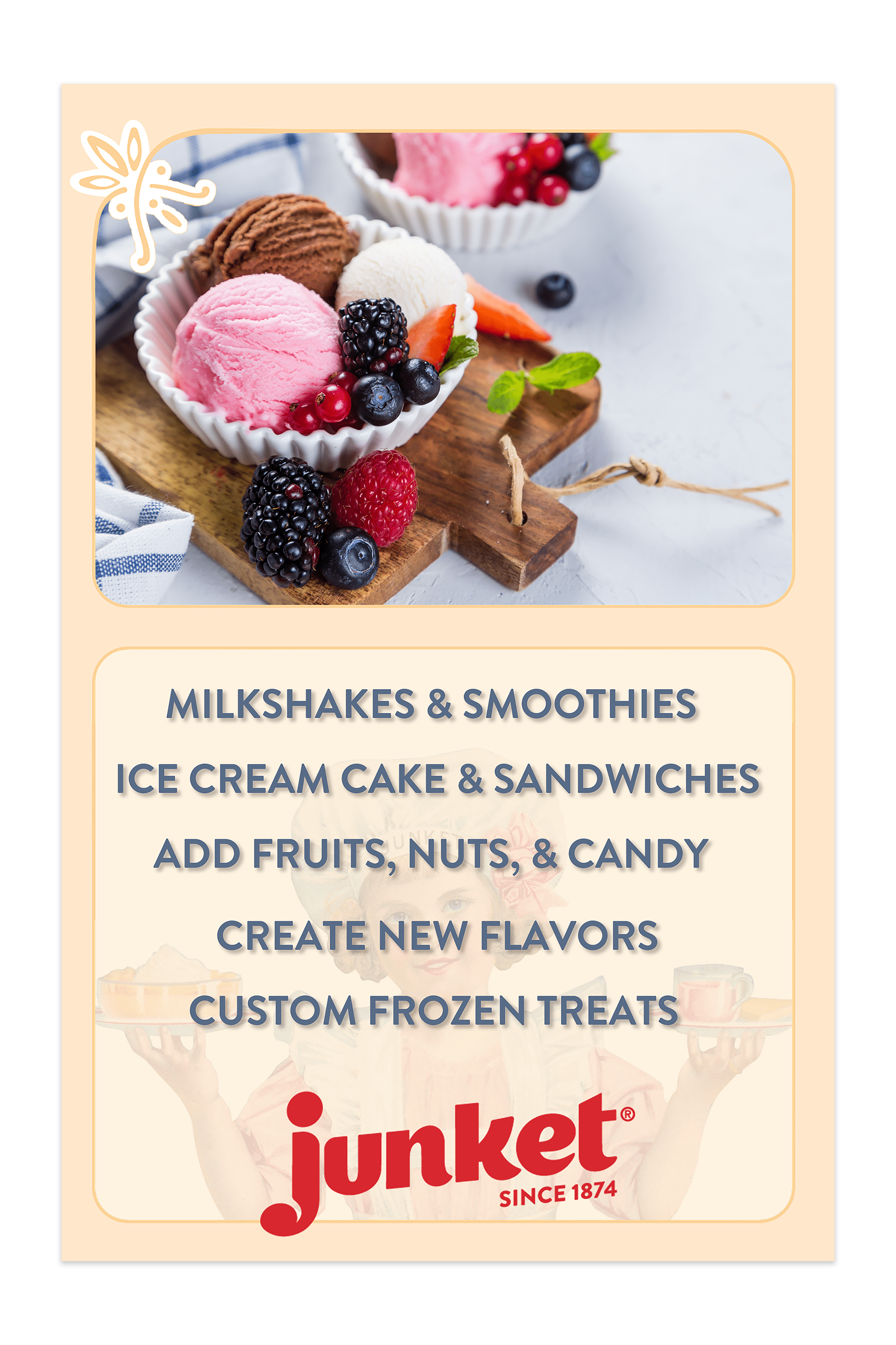 - QUALITY DESSERTS FOR GENERATIONS: Since 1874, Junket has been a family favorite for quality, homemade ice cream and more. Savor all the traditional homemade treats, just like you remember.