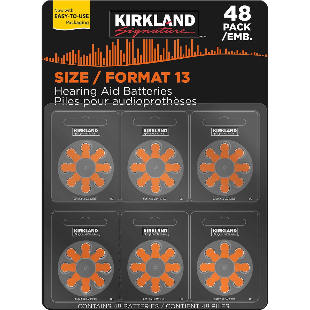 Product DetailsMercury FreeSize 1348 ctMore Information:Durable stainless-steel housing ensures ultimate stability and protection against corrosion2- to 3-year shelf life; remove tab and allow battery to be exposed to air for 1 minute to activate battery before inserting into hearing deviceKirkland Signature Hearing Aid Batteries, Size 13, 48 ct