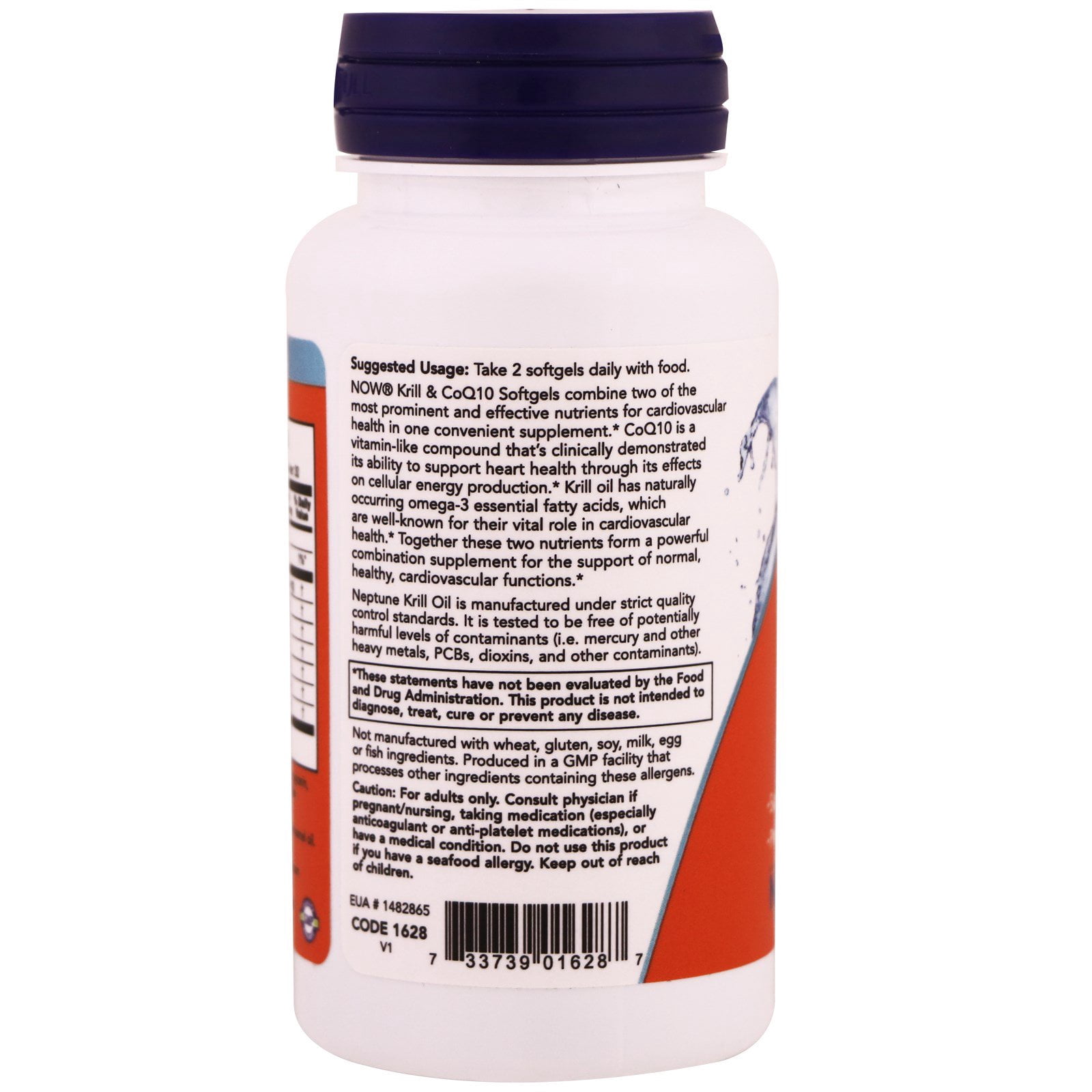 Heart Support Superior Cardiovascular Combination Phospholipids-Bound Omega-3 Neptune Krill Oil – NKO A Dietary Supplement Non GMO Friend Of The Sea® Omega-3/Fish Oils Family Owned Since 1968 GMP Quality Assured NOW® Krill & CoQ10 Softgels combine two of the most prominent and effective nutrients for cardiovascular health in one convenient supplement. CoQ10 is a vitamin-like compound that’s clinically demonstrated its ability to support heart health through its effects on cellular energy production. Krill oil has naturally occurring omega-3 essential fatty acids, which are well-known for their vital role in the cardiovascular health. Together these two nutrients form a powerful combination supplement for the support of normal, healthy, cardiovascular functions. The Krill oil is manufactured under strict quality control standards. It is tested to be free of potentially harmful levels of contaminants such as PCBs, dioxins, mercury and other heavy metals.
