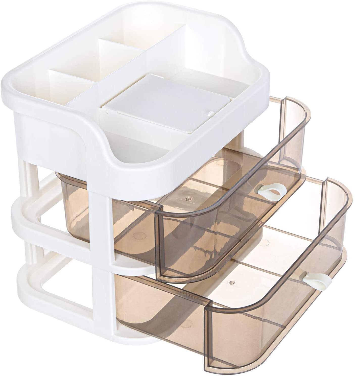 - CONVENIENT & FUNCTIONAL: Keep makeup and accessories organized and easily accessible — Reduce clutter, save time getting ready, and gain space — Convenient slot compartments on top level keeps items protected, upright, and in place.