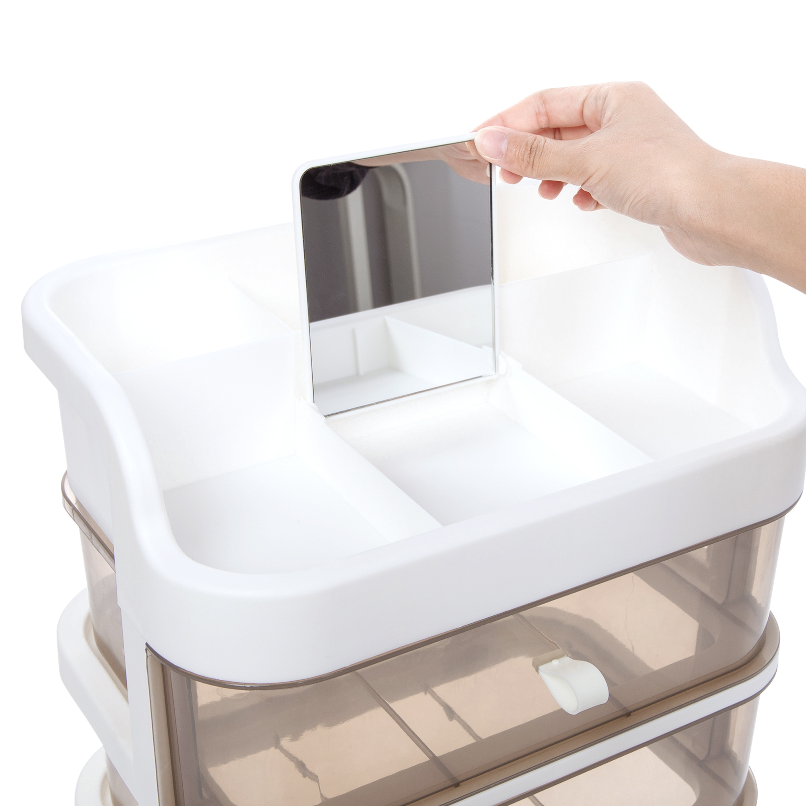 - DURABLE & LONG-LASTING: Made from premium PP material, durable and unbroken— Includes 2 LARGE DRAWERS, 5 SLOTS, A Square mirror compartments (drawers 1.87” deep)— Drawers slide open smoothly with easy grip handles, easily clean with a wipe.