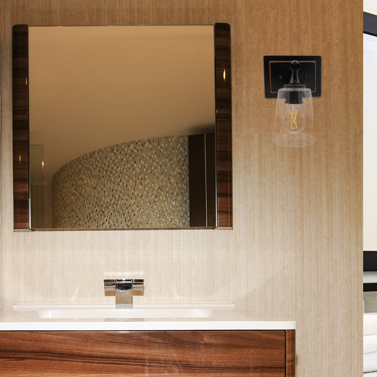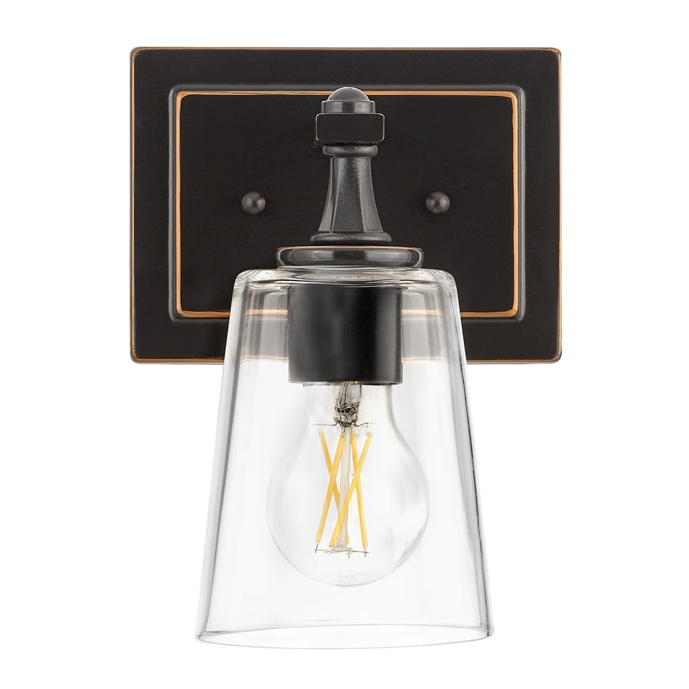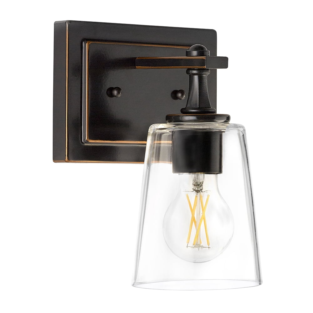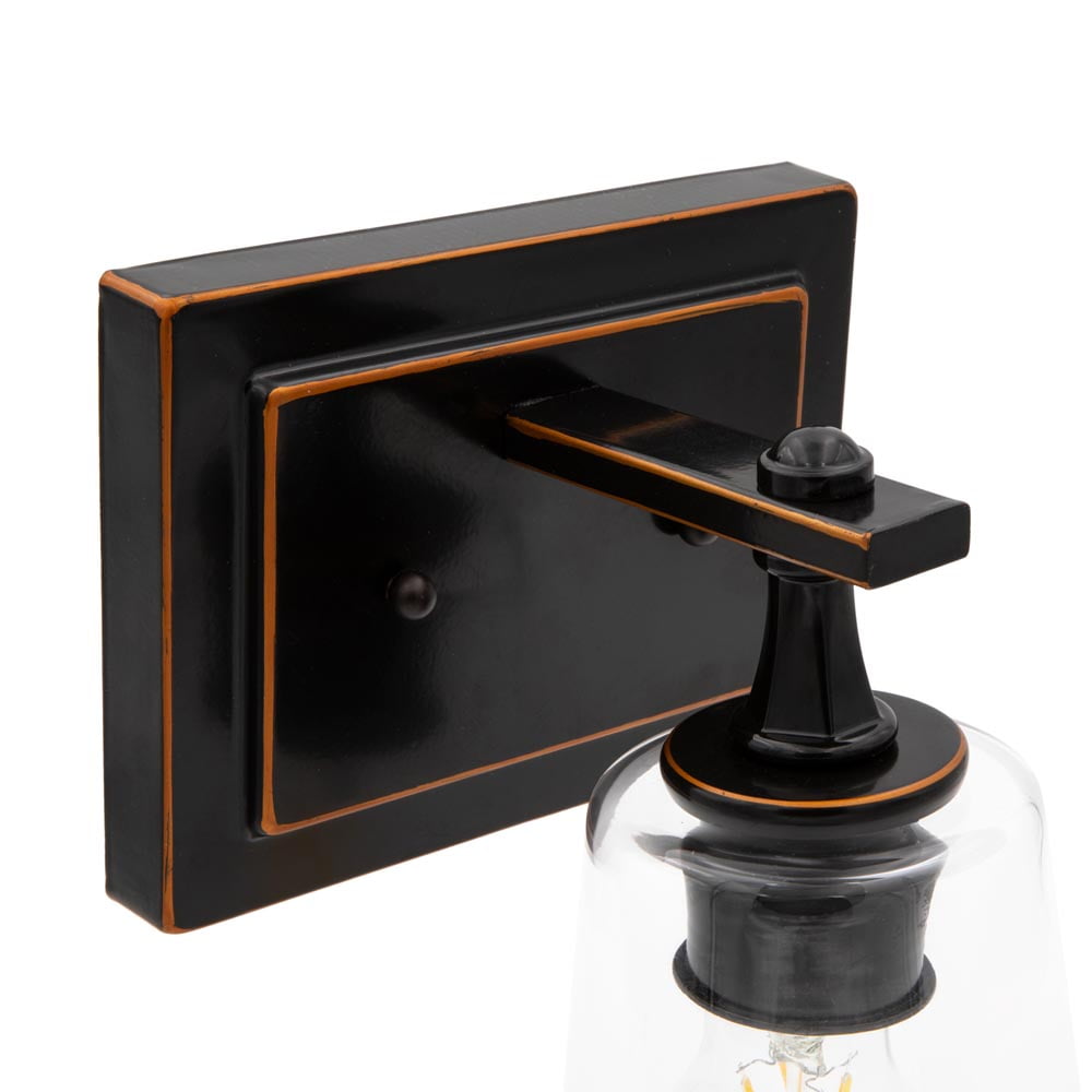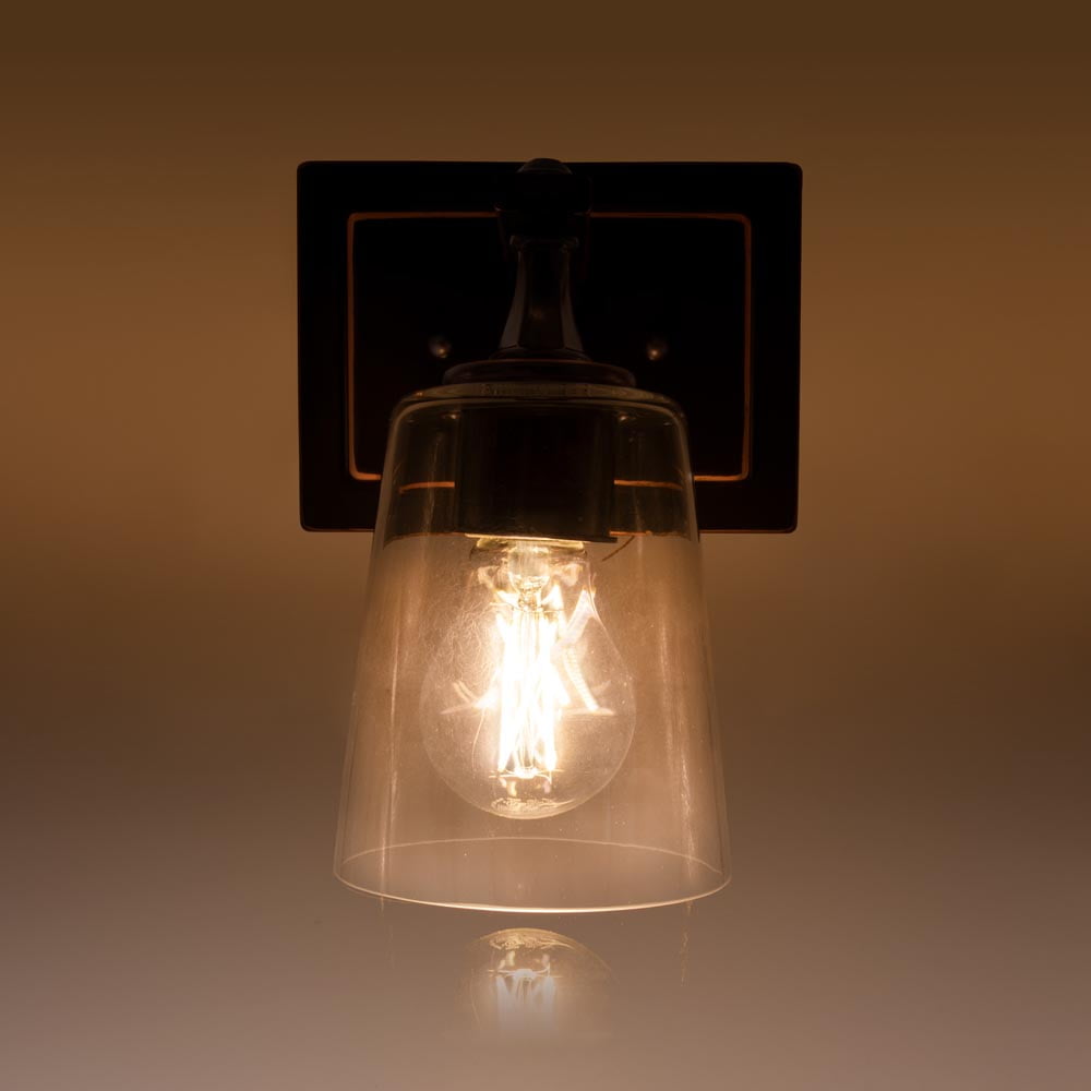 Maxxima LED Wall Sconce Light Fixture, Black with Brown Trim, 800 Lumens 2700K Warm White A19 Bulb Included