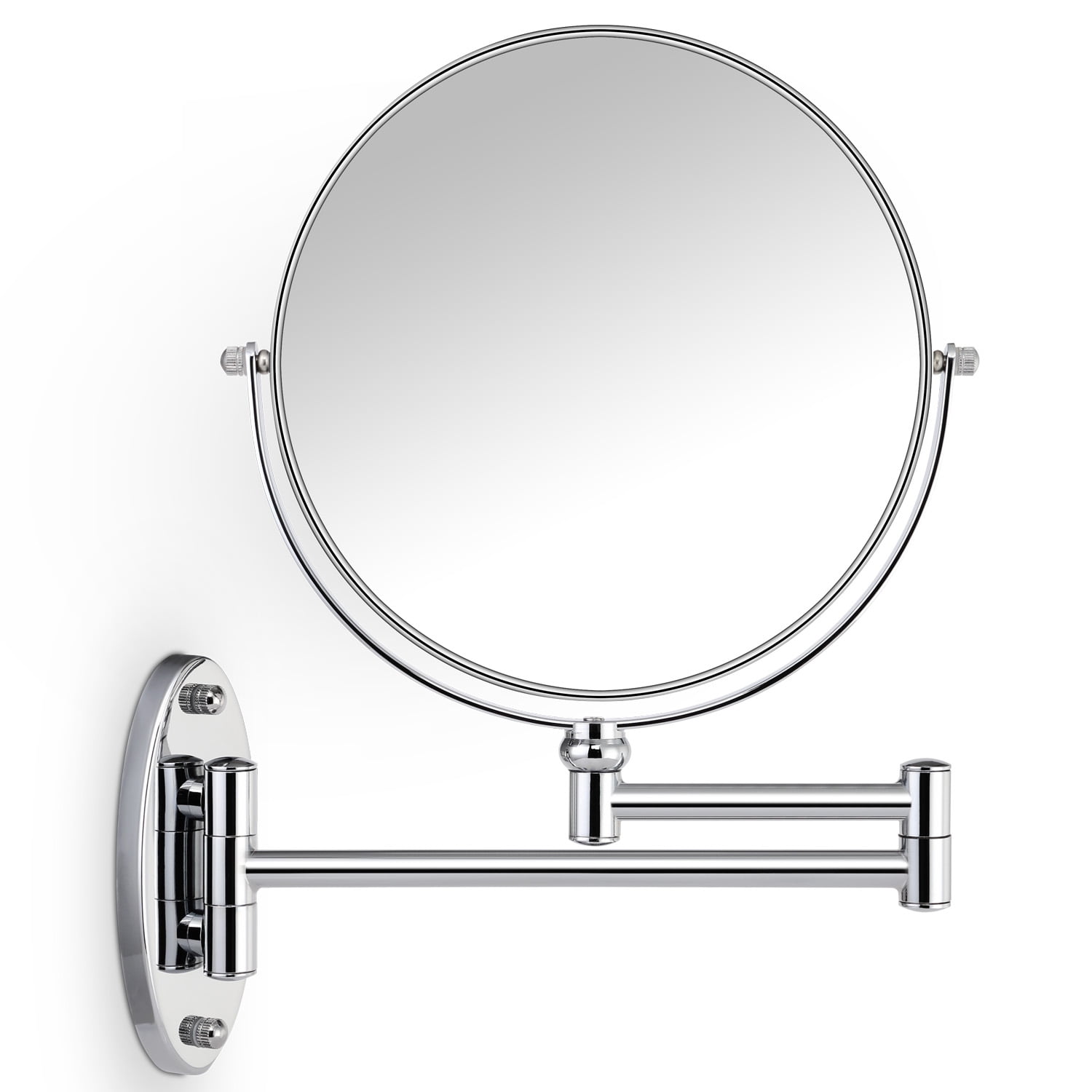 Miusco Extendable Magnifying Wall Mounted Makeup and Face Mirrors, Round, Chrome, 8 Inch
