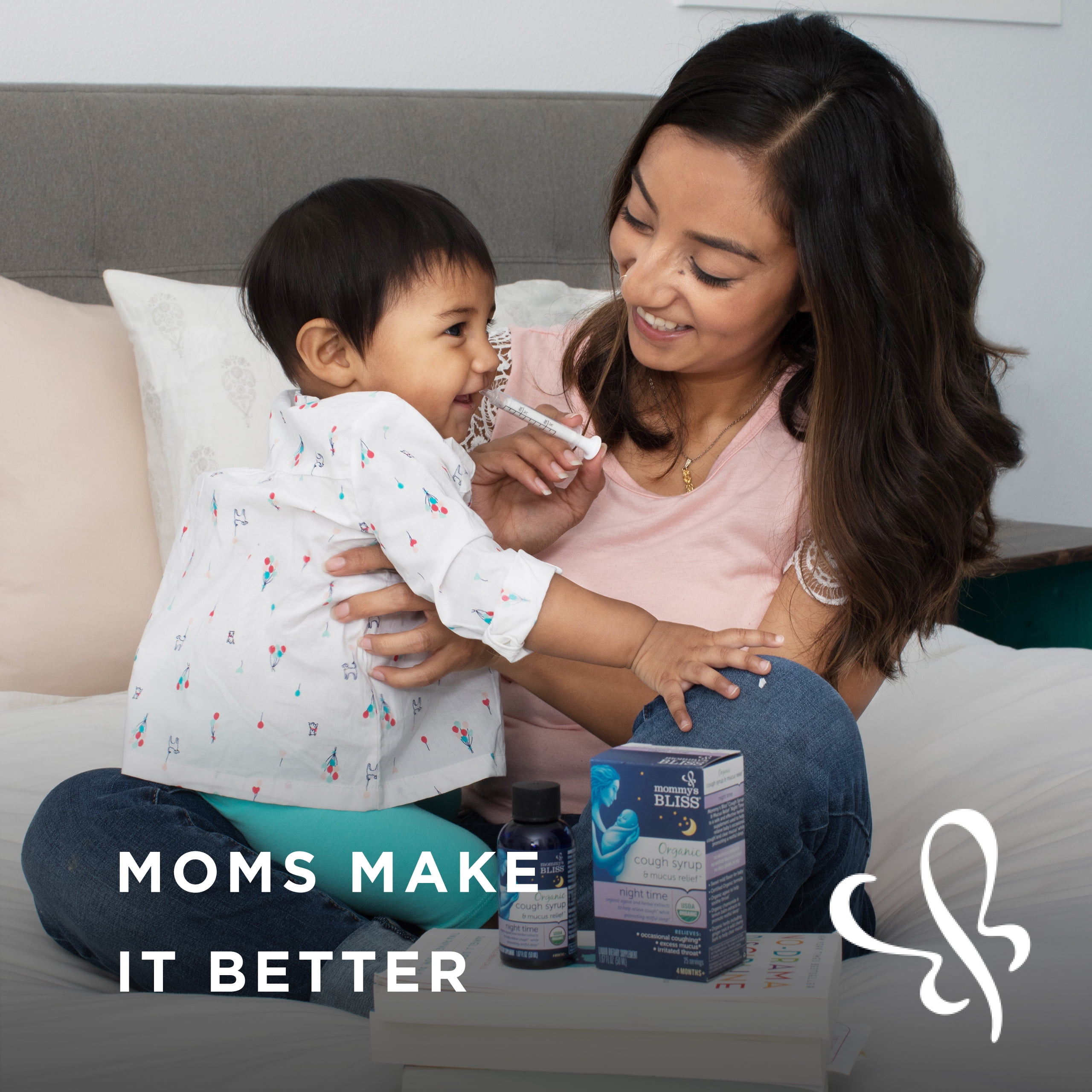 When your little one is coughing, it can be rough on them & and on you. Make sure your ready with a safe, organic product that can help them when coughing to clear mucus*, and promote calm and relaxation* so you both get a goodnights sleep. Our cough syrup relieves discomfort and helps you find your ultimate parenting bliss. Non GMO. Helps with occasional coughing due to irritated or dry throat while promoting restful sleep. This cough syrup is safe for kids 1 year can help them when coughing to clear mucus, moisturize and protect their nasal passages. Organic kids cough syrup night time is an herbal supplement carefully crafted for kids to soothe dry throat and calm occasional coughing while promoting restful sleep. Our family run company was founded by my mom, who raised three children while working as a nurse & certified midwife. Driven by compassion for other moms, she created Mommy’s Bliss to safely and naturally bring families back to wellness.