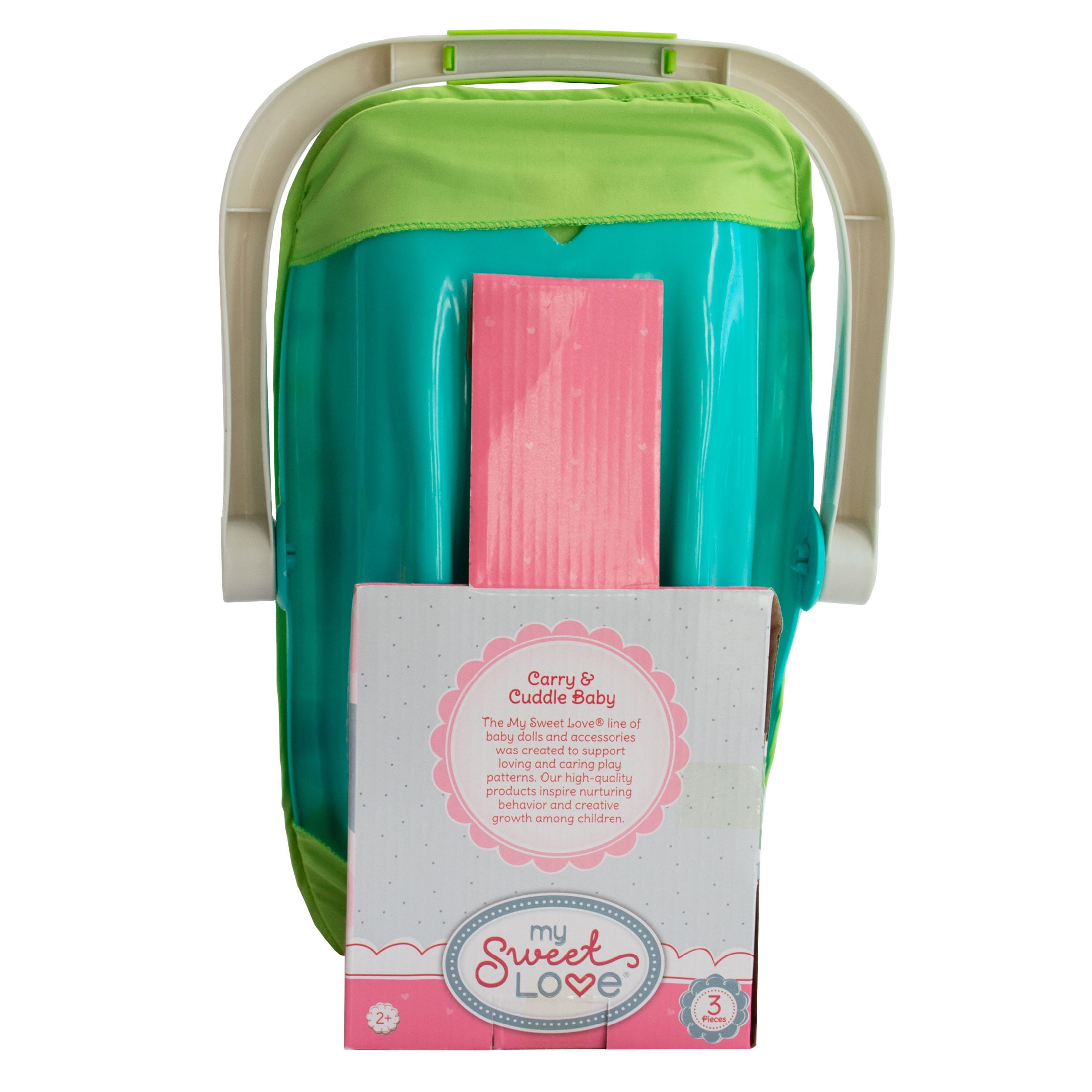 Let your little one buckles up their baby doll and transport her all around the house! The My Sweet Love 13” Baby Doll with Carrier and Handle Play Set, 3 Pieces Included, Blue makes play time, rest time, or car trips a lot more fun. It also helps teach safety and responsibility in a fun and engaging way. The toy car seat has an adjustable handle that swings up for easy carrying and rotates back down to turn the carrier into a feeding seat. The squeezable, soft-body doll is also fun for play and snuggles outside of the carrier. The My Sweet Love 13” Baby Doll with Carrier and Handle Play Set, 3 Pieces Included, Blue is designed for toddlers and children ages 2 and up.