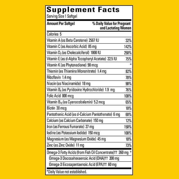 Nature Made®Prenatal Multi + DHA Liquid Softgel multivitamin is ideal for expectant moms and women trying to get pregnant who are looking for a prenatal supplement with clinically proven absorption** that includes docosahexaenoic acid (DHA), an important omega-3 fatty acid.1Supplementing with a prenatal multivitamin daily during your pregnancy is important to help support the health of the mother during pregnancy and the baby’s development.†Nature Made Prenatal Multi + DHA Liquid Softgel combines the 18 essential nutrients of a prenatal multivitamin with 200 mg DHA into just one convenient easy to swallow softgel with no added color or artificial flavors.†
