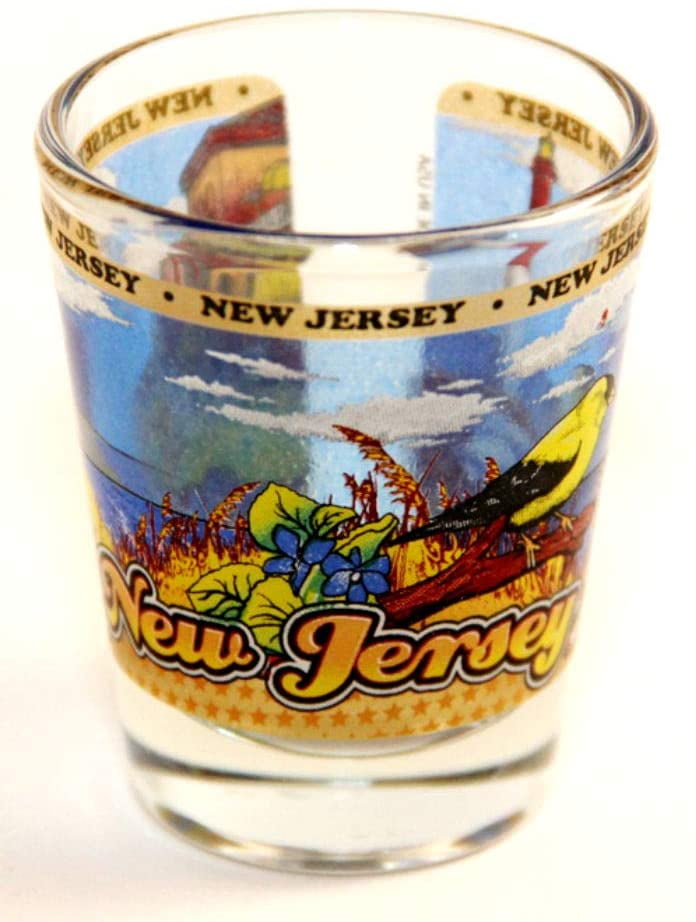 Here is a very rare and hard to find souvenir collectible wraparound shot glass from New Jersey. It is a 5x6cm style shot glass measuring 2.25 inches tall and 1.8 inches in diameter.Souvenir from New Jersey; Great souvenir for many occasions!, Measures 2.25 inches tall and 1.8 inches in diameter