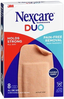 - 3M Nexcare DUO Flexible Fabric Bandages has long & lasting adhesive that allows for wear up to 24 hours, but is gentle enough to allow for easy removal, leaving no gunk.