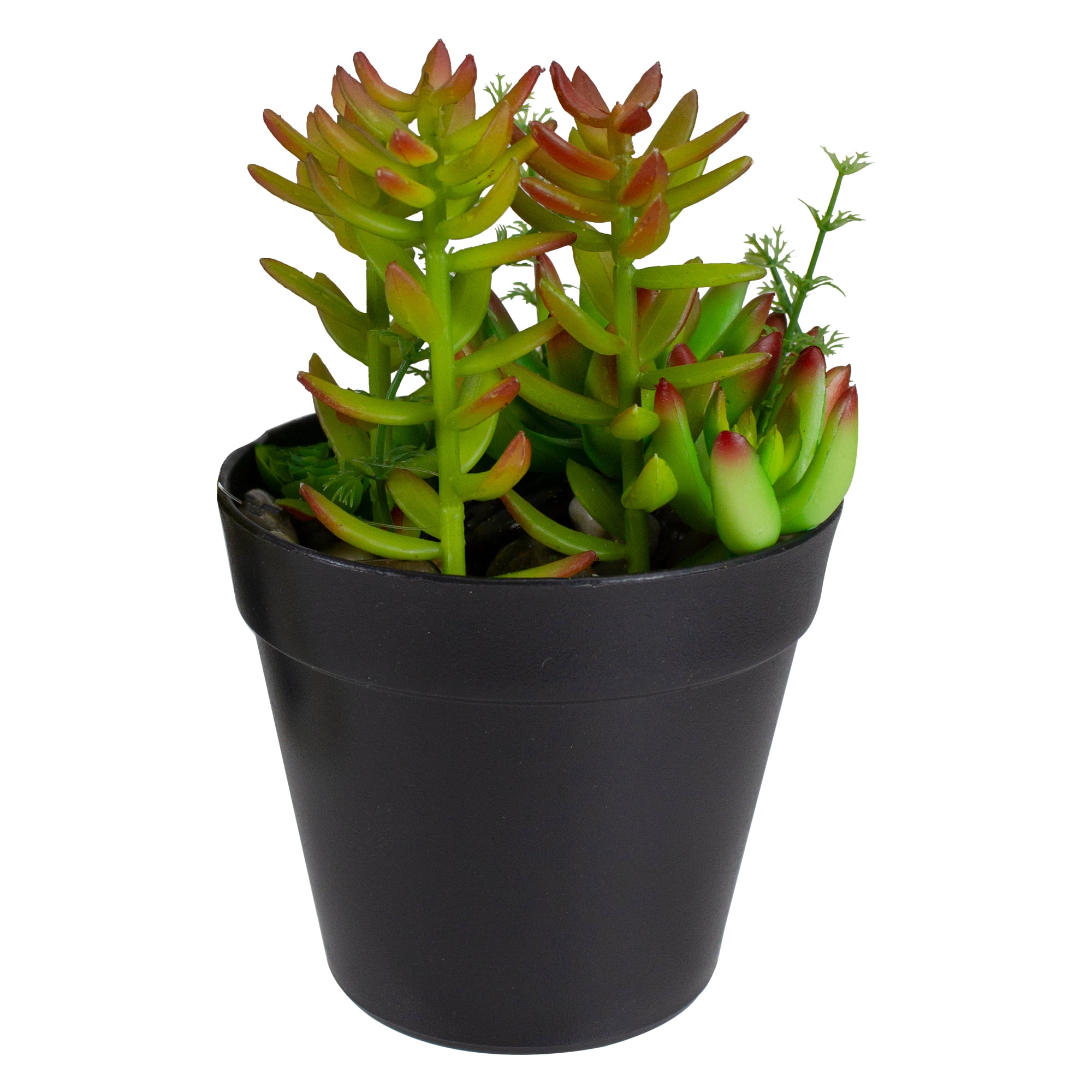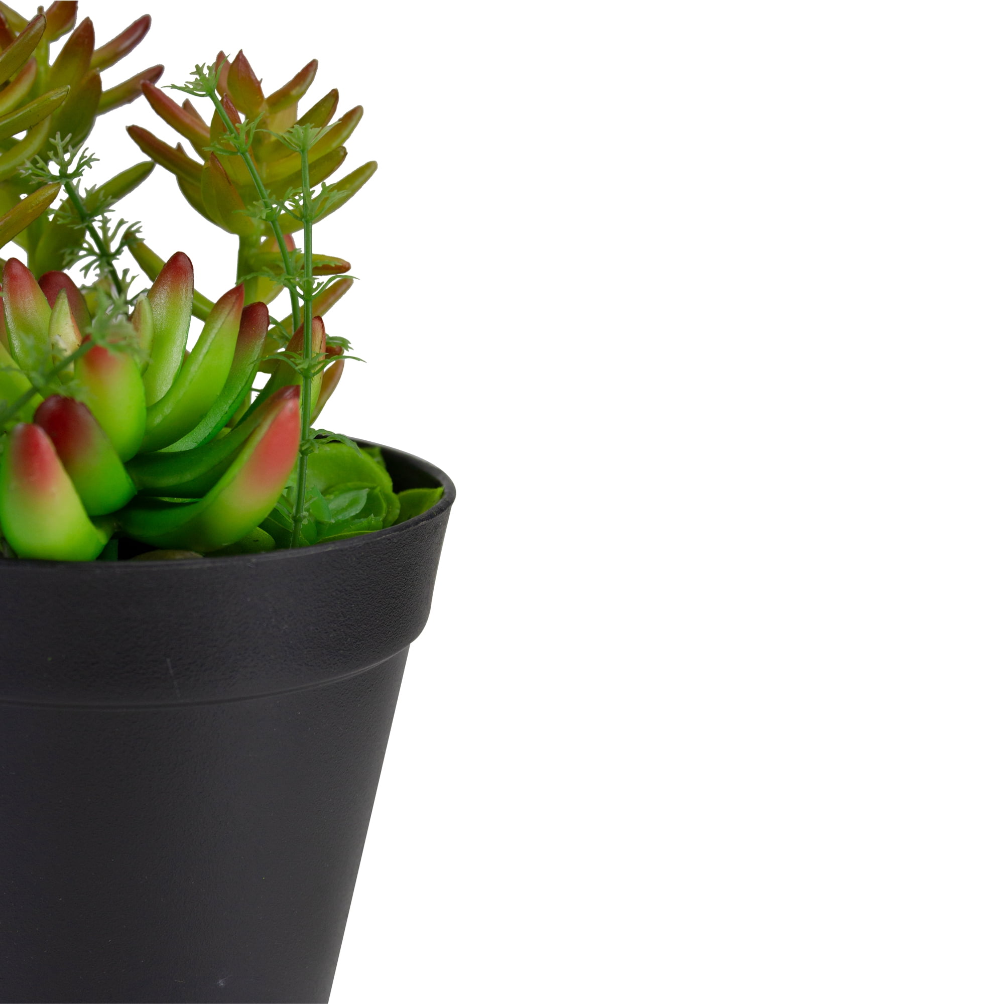 Add natural texture to your decor with this beautiful succulent arrangement. Indulge in the natural oasis formed by this stunning design without being committed to long term care. Place it on your desks and tabletops to create a unique display. Product Features: Green and red artificial succulent plant arrangement in pot. Arrangement has the mixture of succulent plant. Perfect for lobbies, reception areas, offices and more. Recommended for indoor use only. Dimensions: 8"H x 5"W x 5"D. Material(s): plastic