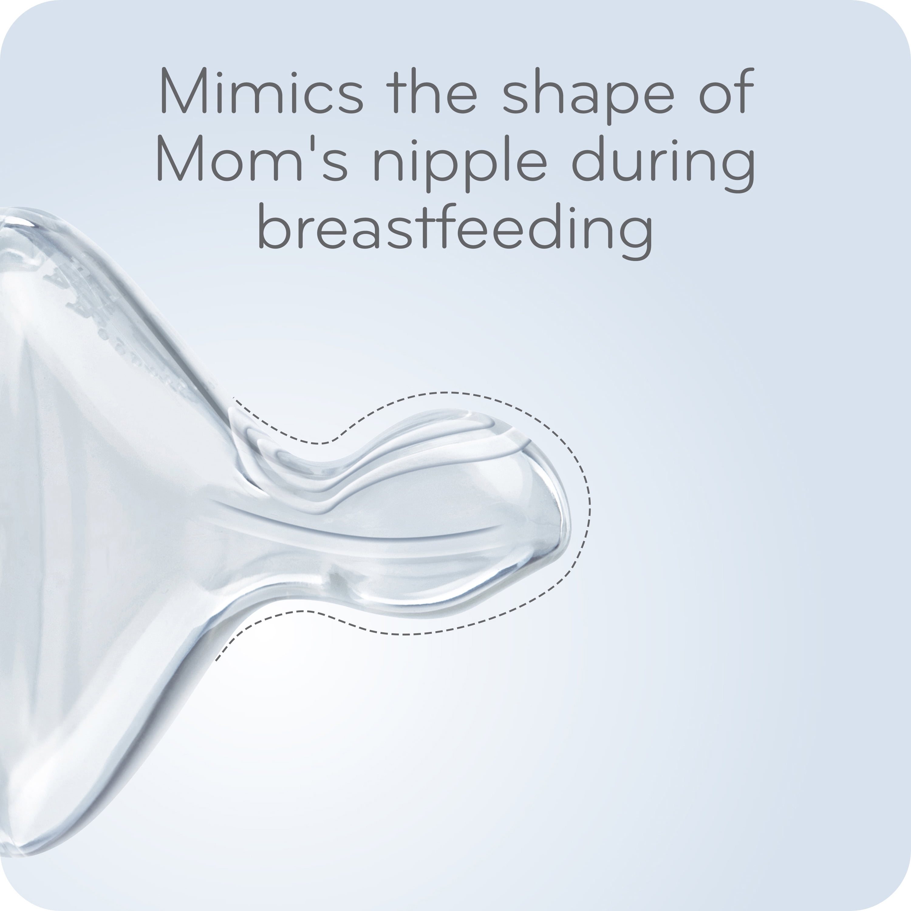 - Bottle nipple mimics the shape of mom’s nursing nipple during breastfeeding, for a smooth transition from breast to bottle and back