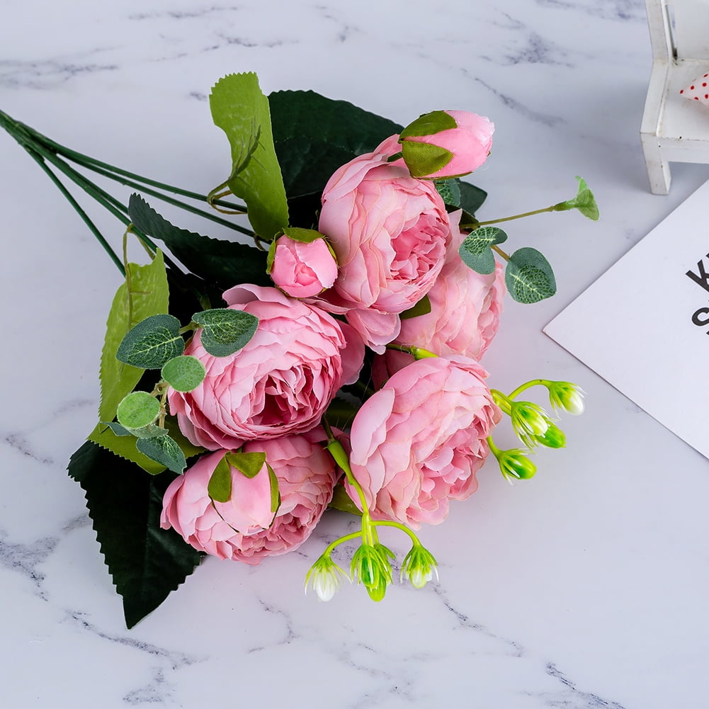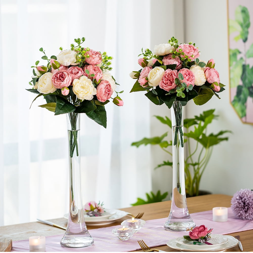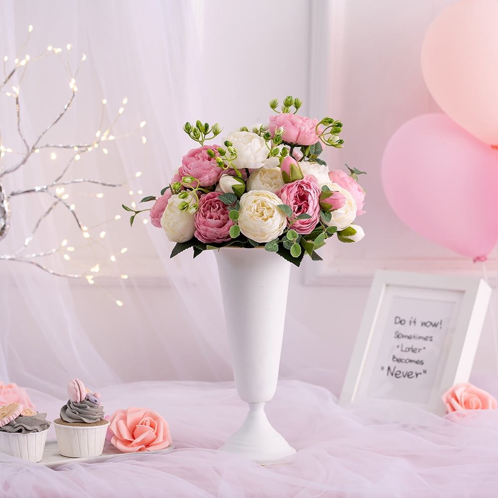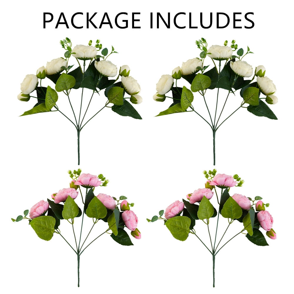 Nupito 4 Bunches Peonies Artificial Flowers White and Pink Fake Peony Bouquet