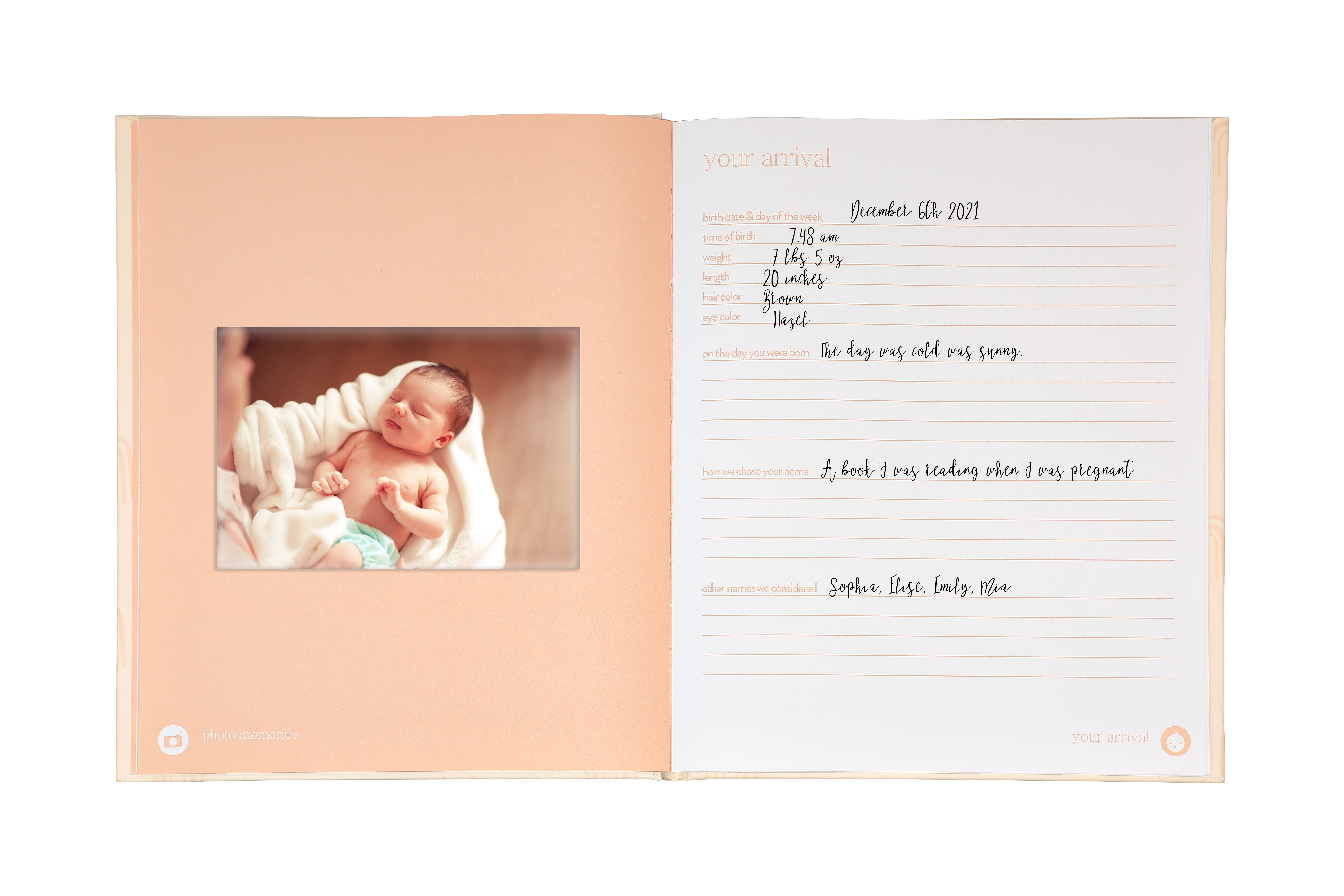 - Pearhead’s gender-neutral blush rainbow baby book is the perfect keepsake for new moms to record all of their baby girl’s or baby boy’s precious memories and moments throughout baby’s first year and beyond!