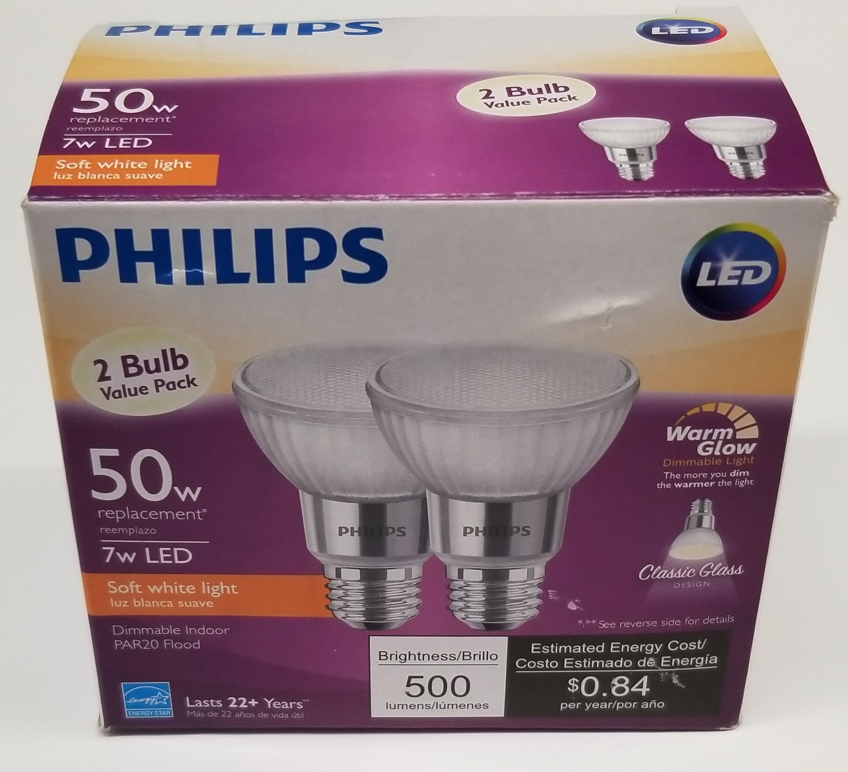 Phillips LED 50-Watt PAR20 Indoor Floodlight, Soft White, Dimmable, E26 Medium Base (2 Pack)