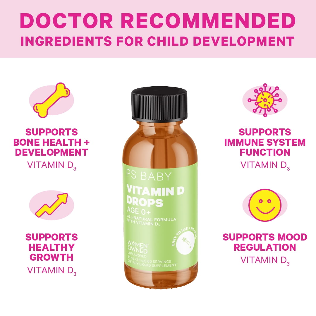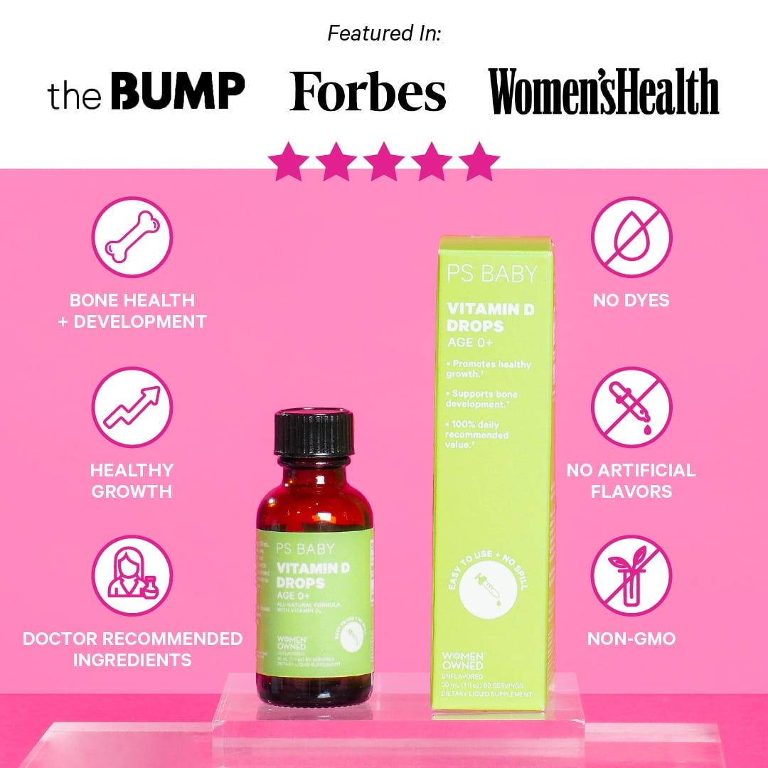 Pink Stork, the brand millions trust to support their fertility, pregnancy, postpartum and nursing journeys, now offers Vitamin D3 drops for your baby! According to the American Academy of Pediatrics, breastfed babies need a supplement of 400 IU of vitamin D to help absorb calcium for strong bones and teeth. Pink Stork Baby Vitamin D drops come with an easy-to-use syringe for precise dosing so baby gets the full daily recommended value of vitamin D. Drops can be administered directly into baby’s mouth or mixed with food or drink. These statements have not been evaluated by the Food and Drug Administration. This product is not intended to diagnose, treat, cure, or prevent any disease