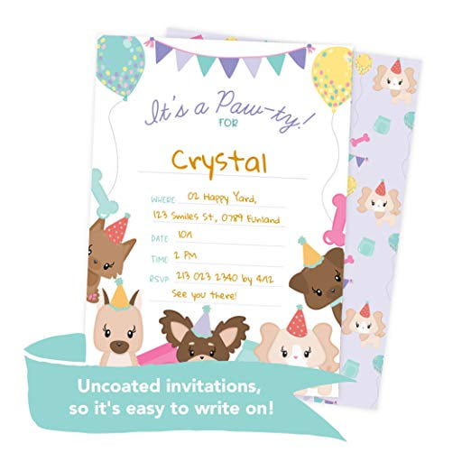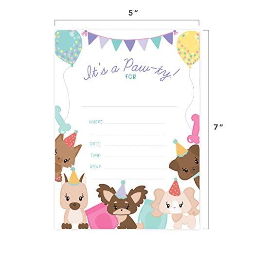 With our invitations, you get enough to invite 25 people. You get 25 invitations (measuring 5 inches wide x 7 inches tall), 25 envelopes as well as 25 seal stickers that are perfect to not only seal up the envelopes but also to add some extra party design to the envelopes. DonÂ?t be fooled by small invitations. Our invitations measure 5 inches wide x 7 inches tall. In addition, all of our invitations are two sided with high quality colors. Envelopes are included! Our special pack includes A7 envelopes specifically meant to fit 5 inches x 7 inches invitations and also seal stickers. All of our invitations are printed on a thick 14 pt cardstock that features the colorful design on both sides in full-color. Invitations are also uncoated, meaning that itÂ?s super easy for you to write all of the party information on them. In order to protect the invitations, envelopes and seal stickers, each pack is placed inside a high quality box to ensure they are not damaged.Puppy Dog Doggy Style 1 Happy Birthday Invitations Invite Cards (25 Count) With Envelopes & Seal Stickers Boys Girls Kids Party