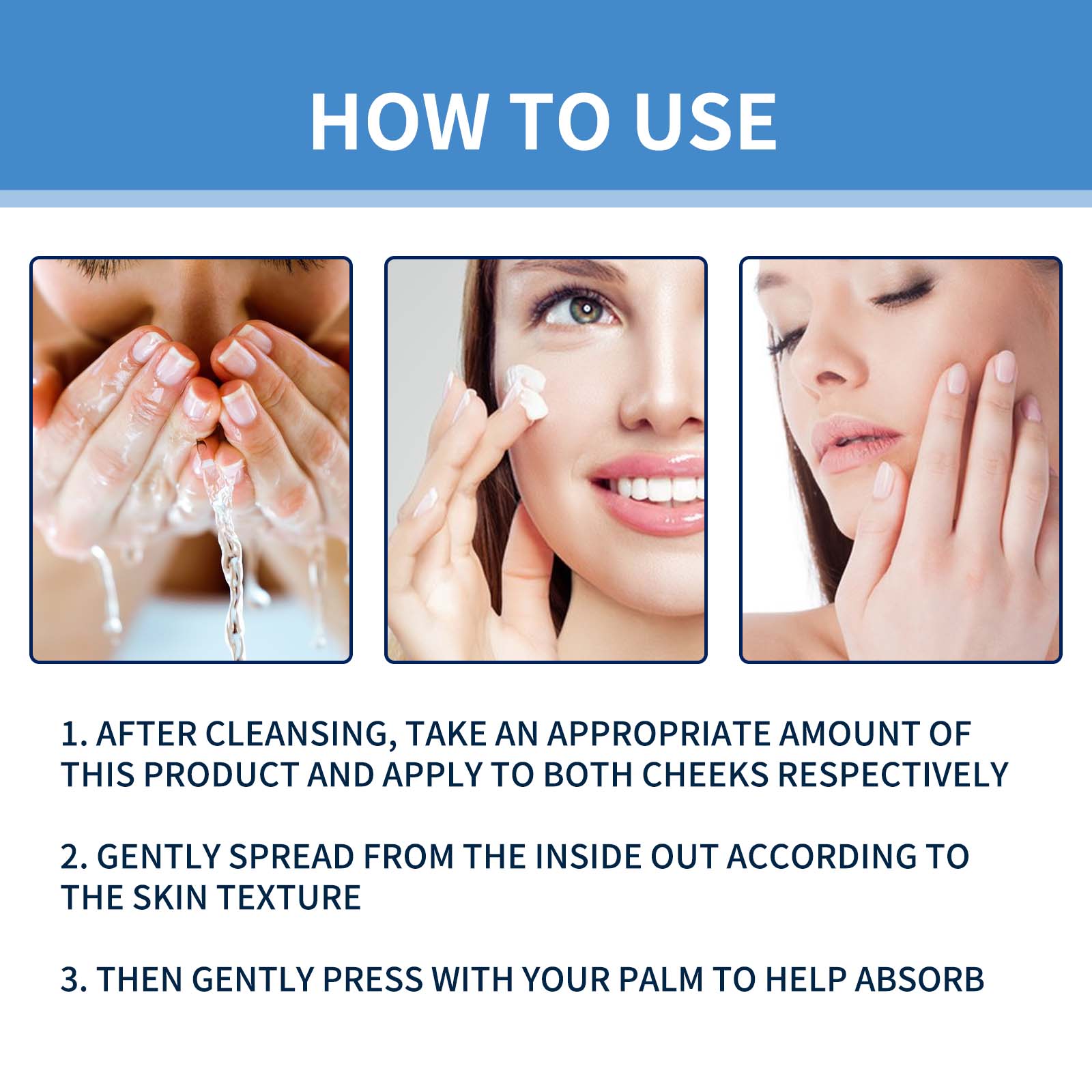 After basic cleansing, apply appropriate amount of this product on the palm, smear evenly on the face with the finger and massage until absorbed.