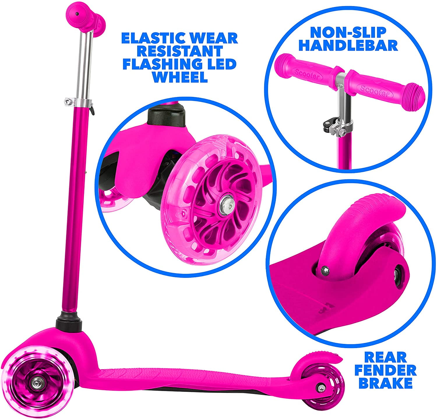 Rugged Racers 3 Wheel Scooter is designed for beginner children aged 3+ girls & boys. Our highly rated scooter features everything your kids love, from LED lights up wheels to eye catching Cartoon prints. This scooter will create endless fun and exercise for years making it one of the best values presents you can buy your child! Our scooters are made with aluminum and durable nylon composites. This will make sure your kids will ride safely, stably and smoothly. Let your child go outside and have blast with friends. Rugged Racers is always the best choice!