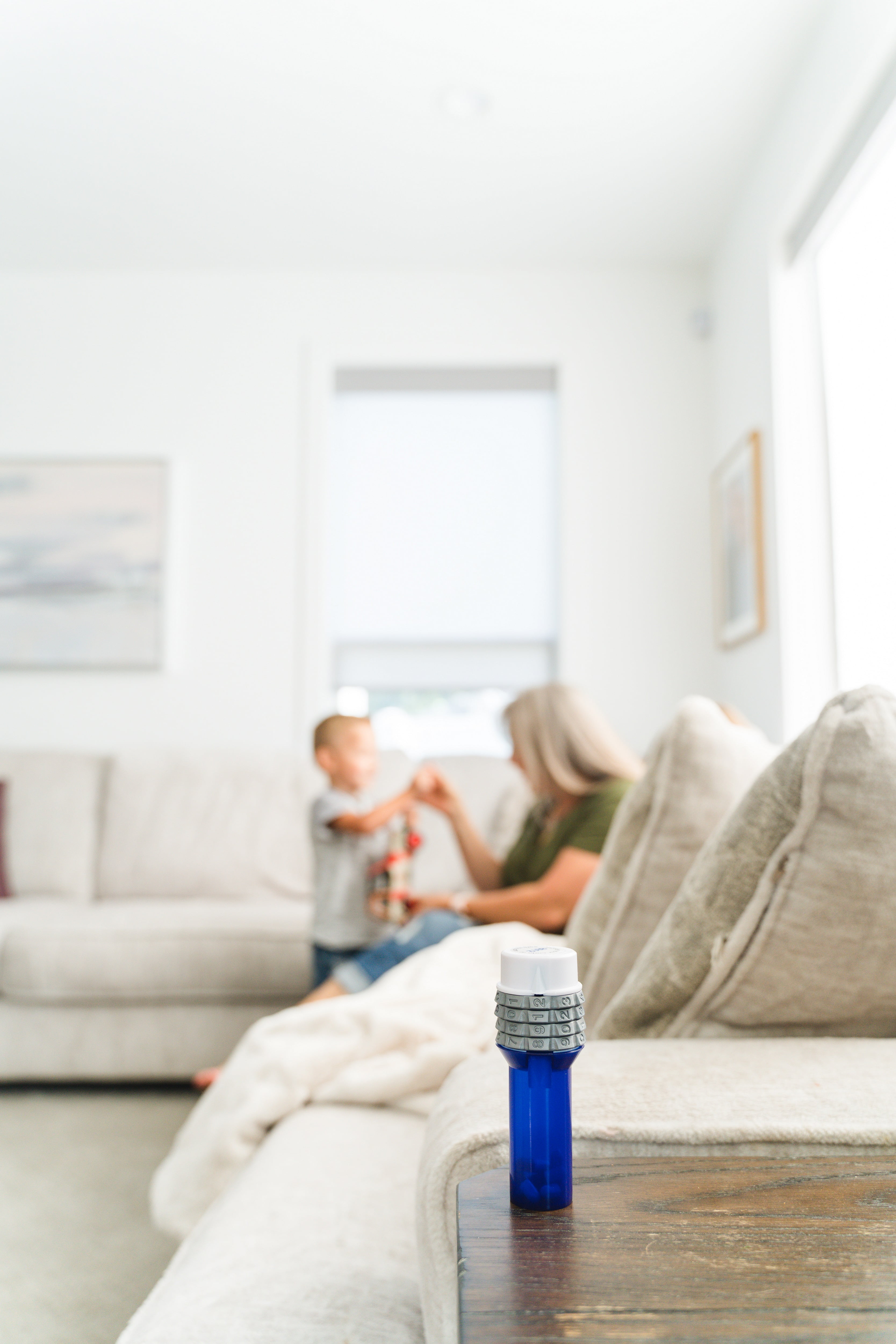 Safe Rx LOCKING PILL MINI-SAFE: Our Mini-Safe is 5.4" tall and 2" wide. Opaque hard plastic keeps contents safe from light and moisture. The combination lock comes present with a fixed 4-digit code for your convenience. FITS STANDARD PHARMACY BOTTLE: The Mini-Safe is a larger version of our locking pill bottle. You can place your standard-size pharmacy bottle inside it to keep safe from visitors, at-home help, children, teens- anyone who doesn’t have your authorized access. TAMPER EVIDENT: If the bottle is broken into, you’ll have clear evidence. When the cap has been forcibly removed, the grey tabs in the locking ring will be visibly deformed and the locking mechanism will no longer work effectively. EASY TO USE AND SENIOR FRIENDLY: Simply turn the rings to align the 4-digit code and pull the cap straight off. Replace the cap and scramble the rings to relock. No hand strength is required! 91% of seniors during testing could use the bottle as intended. CERTIFIED CHILD RESISTANT: Proved 100% effective when tested on kids aged 5 and under, and easier to use than the existing child-resistant bottles that were designed 50 years ago. Protect your curious toddler from accidental overdose or poisoning.