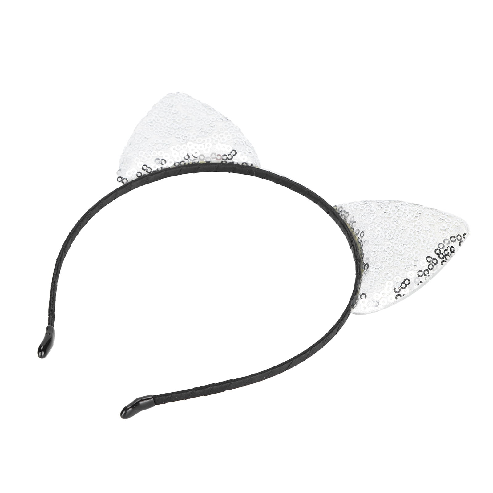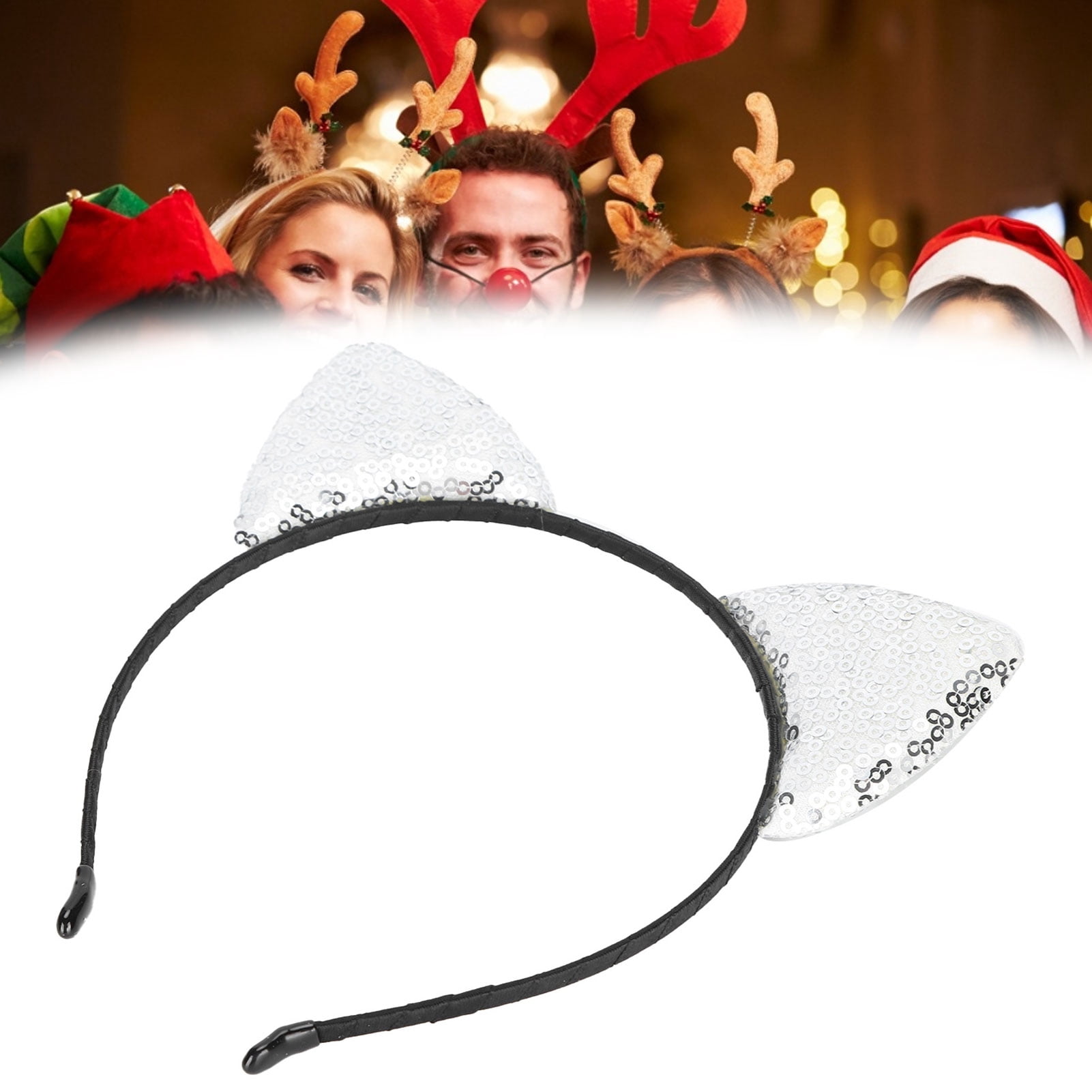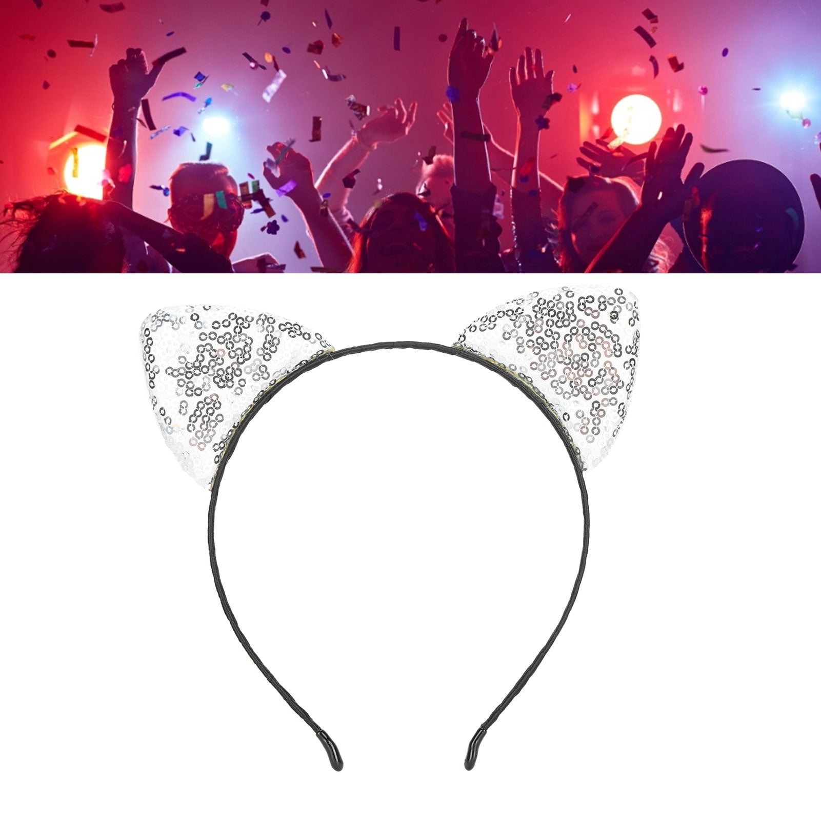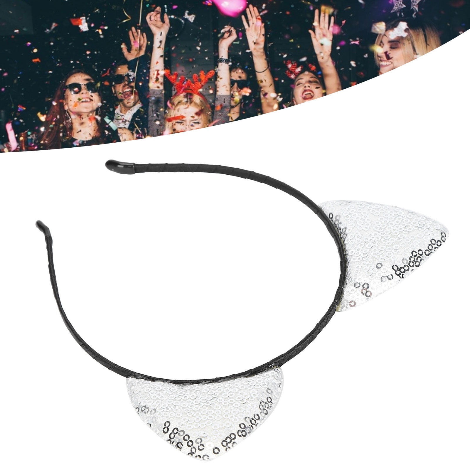 Sequin Ear Headbands, Shiny Cat Ear Kitty Headband At Ear Headband Beautiful Shining for Daily Life Weddings Party Dances for Christmas Holloween Silver