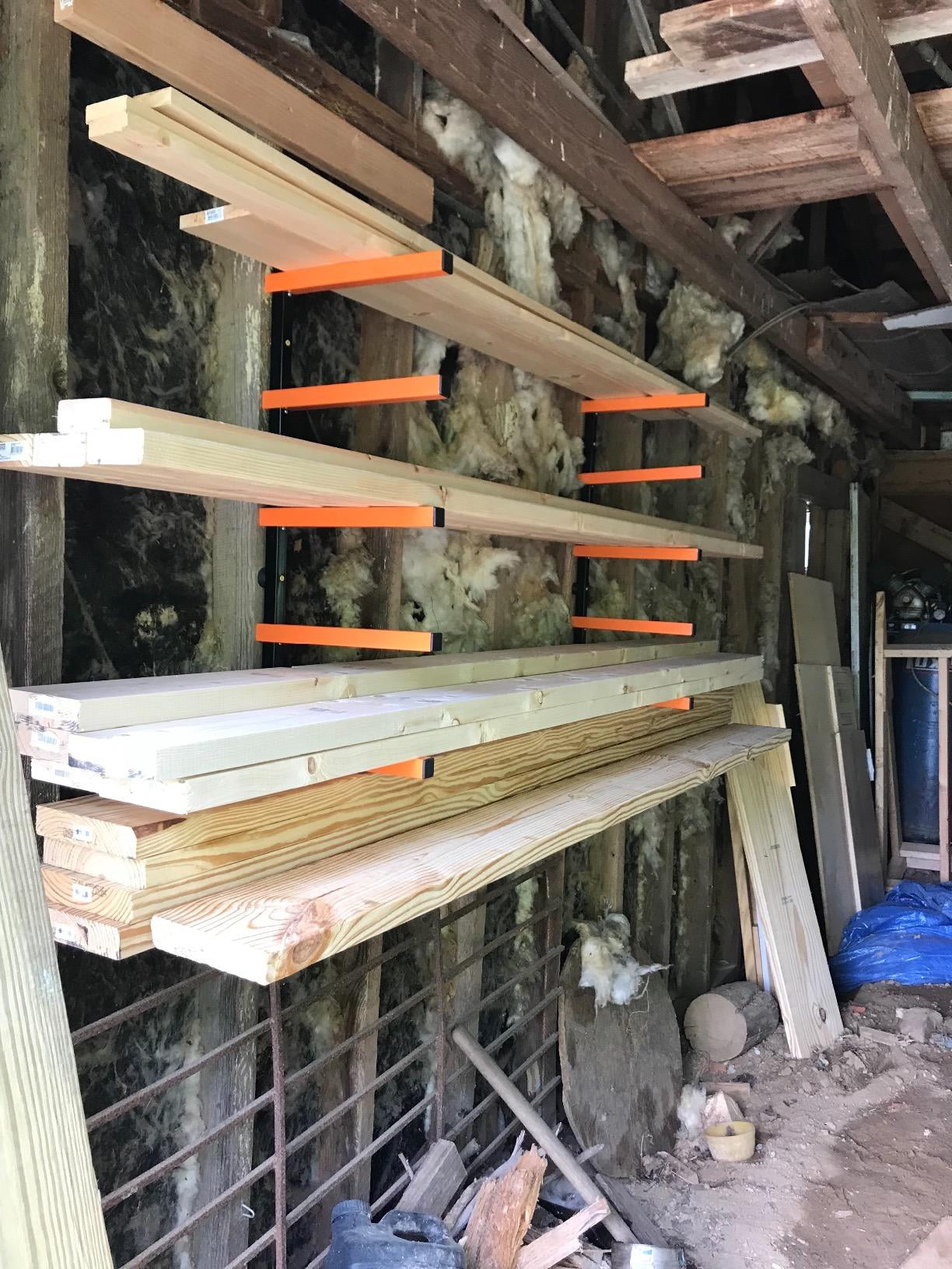 - An excellent solution to managing tight storage spaces of lumber, moldings, pipes, PVC, and more–neatly and safely.