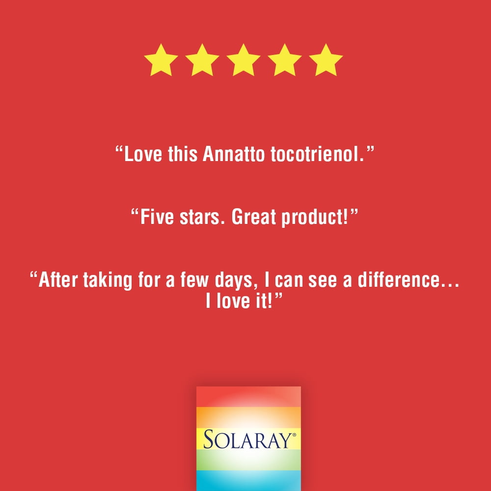 Naturally sourced from annatto, Solaray Vitamin E Tocotrienols 50 mg provide 90% delta-tocotrienols and 10% gamma-tocotrienols in small, easy-to-swallow softgels that are specially formulated to help you feel your best!