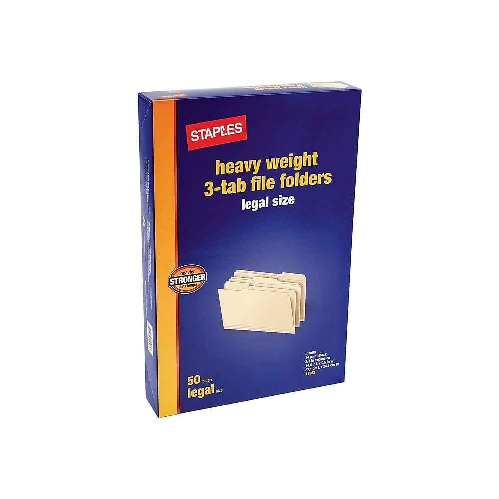 Staples Heavyweight Manila File Folders 3 Tab Legal 50/Box 810353