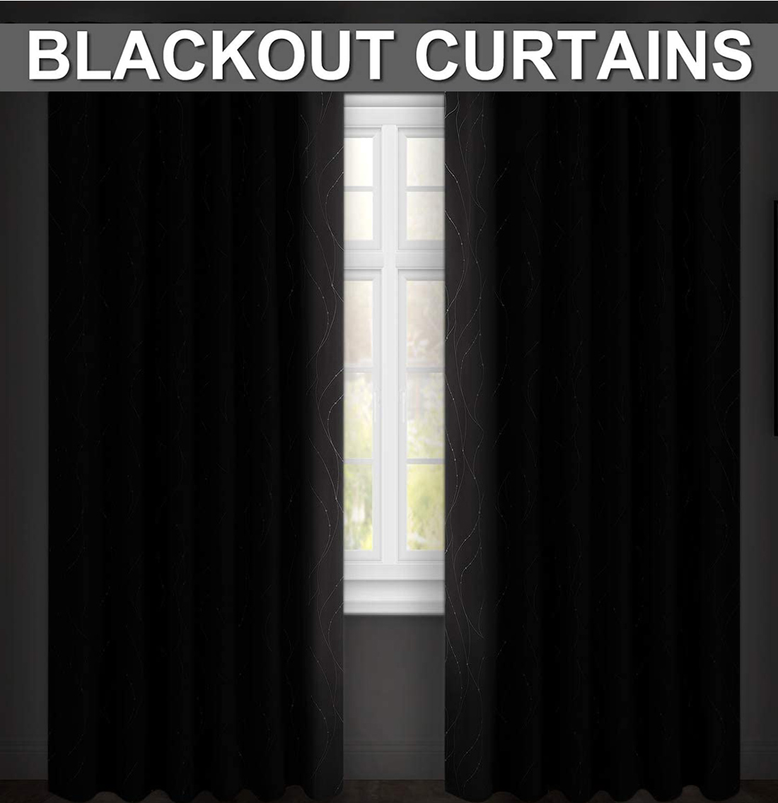 - Package Include: Set of 2 blackout curtain panels. Each panel measures 52W x 63L inches with 8 silver metal grommets. Updated metal grommets make your curtain easy to slide and durable to use.